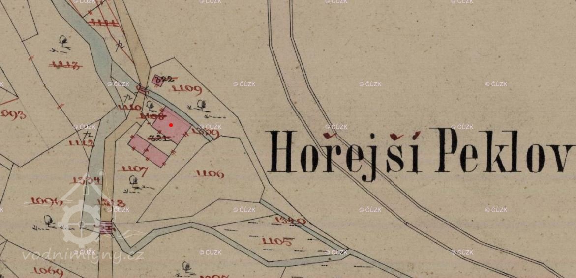 Nejstarší písemná zmínka o tomto mlýně pochází již z roku 1491(!), kdy Jindřich z Kostelce zapsal své manželce Anně ze Sulevic 1000 kop grošů českých na svém majetku, mj. i na mlýně pod hradem v Kostelci . Antonín Profous sice ve svém velkém díle uvádí, že se poprvé horní Peklov připomíná již roku 1439, kdy zde měl jistý Jakub z Brodu vlastnit poplužní dvůr, ovšem jedná se o omyl (už z toho důvodu, že zde nikdy takový dvůr nebyl) – jedná se totiž o nynější dvůr Čechov u Vlašimi, jemuž se do 17. století říkalo Peklov . Další zpráva o hornopekelském mlýnu je pak z 19. března 1544, kdy tehdejší majitel Černokosteleckého panství pan Diviš Slavata z Chlumu zapsal své manželce částku 7500 (!) kop grošů českých na tomto panství a hovoří zde také o mlýnu u Kostelce . Jednalo se tedy o jednu z nejstarších staveb v katastru města.V urbáři Černokosteleckého panství z roku 1564 se mluví o mlýnu v Peklovském údolí (Pod týmž zámkem jest mlejn o jednom kole, v němž se sladové k pivu vaření i jiné potřeby k zámku, když vody dostatek jest, melí, a v tom mlejně se mlynář náchlebný chová ), který může ztotožnit s horním Peklovem. Až na výjimky neznáme až do 18. století zdejší mlynáře jménem – jednou z oněch výjimek je jistý mlynář Landfeld, kterého v dubnu 1682 obvinil kostelecký starší sládek Václav Chvalovský z krádeže dvou konví piva .století zdejší mlynáře jménem – jednou z oněch výjimek je jistý mlynář Landfeld, kterého v dubnu 1682 obvinil kostelecký starší sládek Václav Chvalovský z krádeže dvou konví piva .století zdejší mlynáře jménem – jednou z oněch výjimek je jistý mlynář Landfeld, kterého v dubnu 1682 obvinil kostelecký starší sládek Václav Chvalovský z krádeže dvou konví piva .