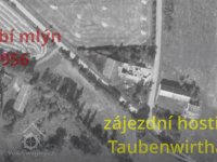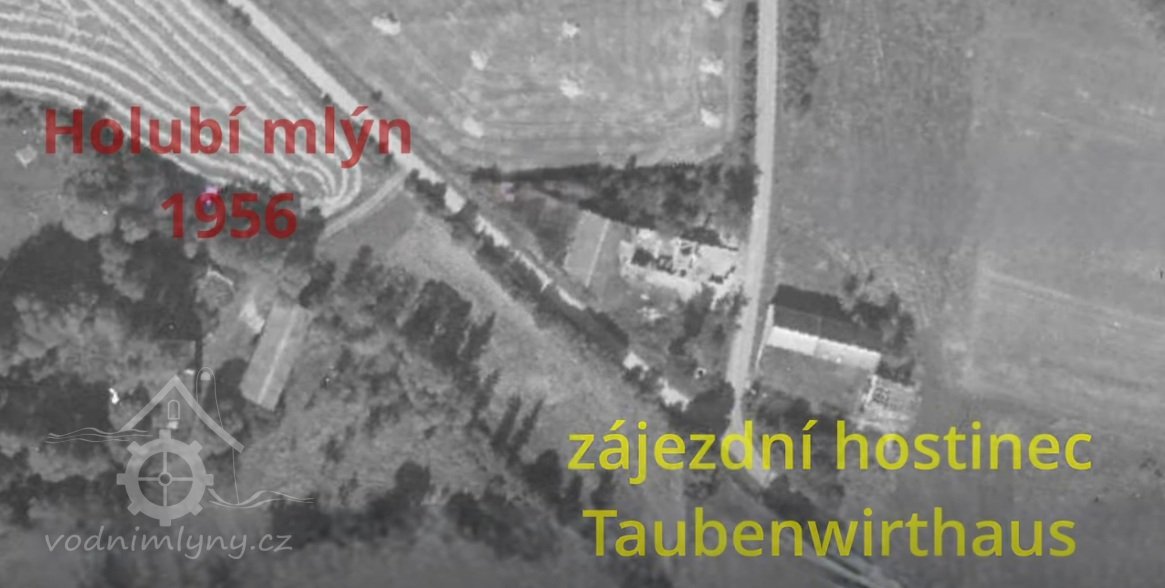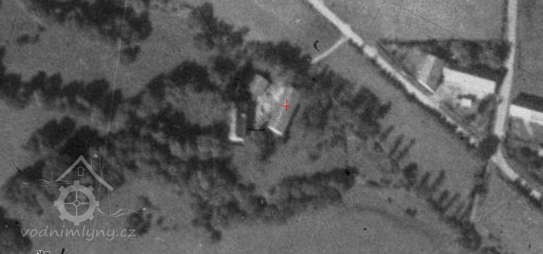 Na leteckém snímku z r. 1952 je ještě dobře vidět, jak byly budovy mlýna uspořádány. K většímu chátrání došlo zřejmě až později v průběhu 50. a 60. let.