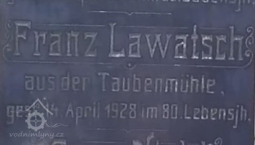 V r. 1885 se na mlýně uvádí mlynář Franz Hlaváč.