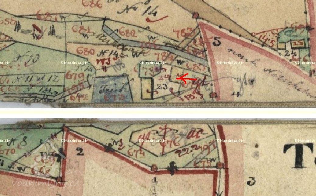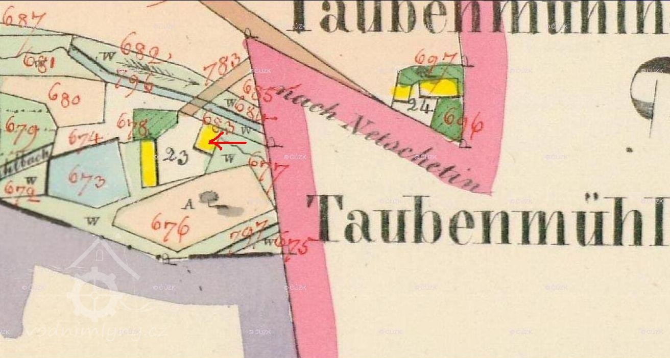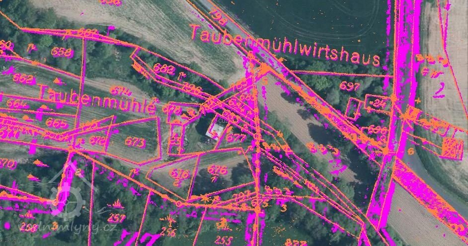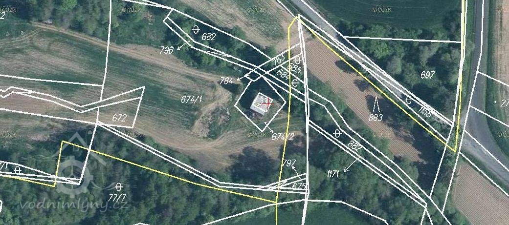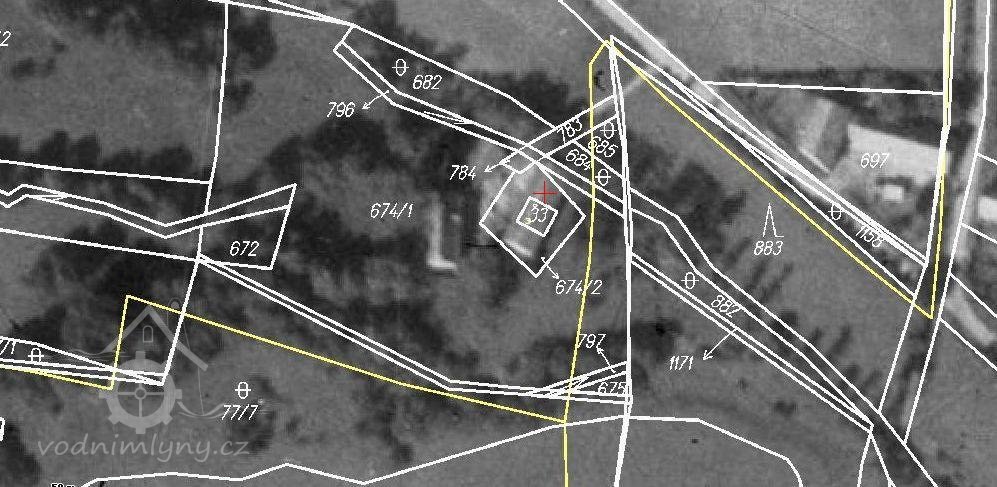 Při snímkování v r. 2012 byla již na místě bývalého mlýniště postavena malá stavba pro rekreaci pod p.č.st. 33.