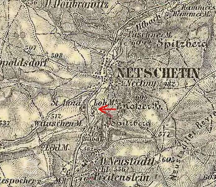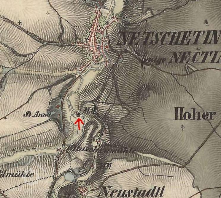 Mlýn je zobrazen již na I. vojenském mapování v letech 1764-68, a to na soutoku Starého a Plachtínského potoka, východně od kaple sv. Anny.