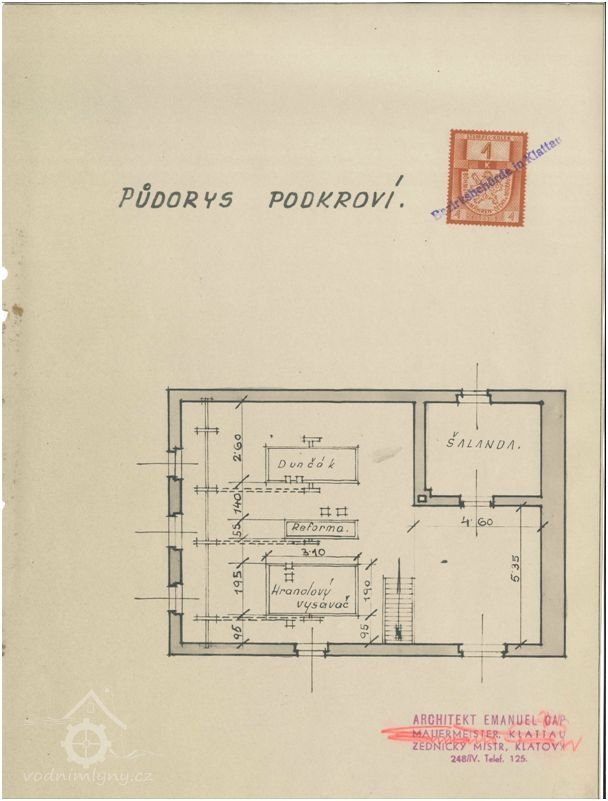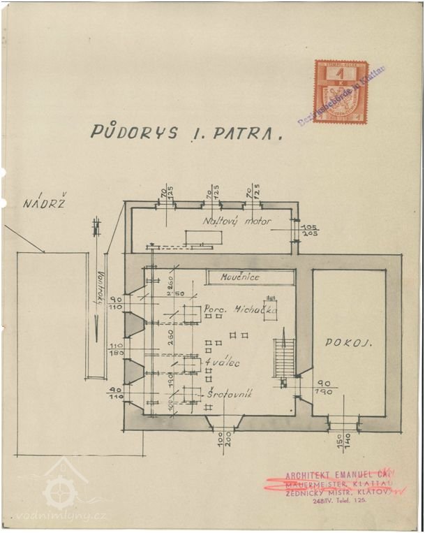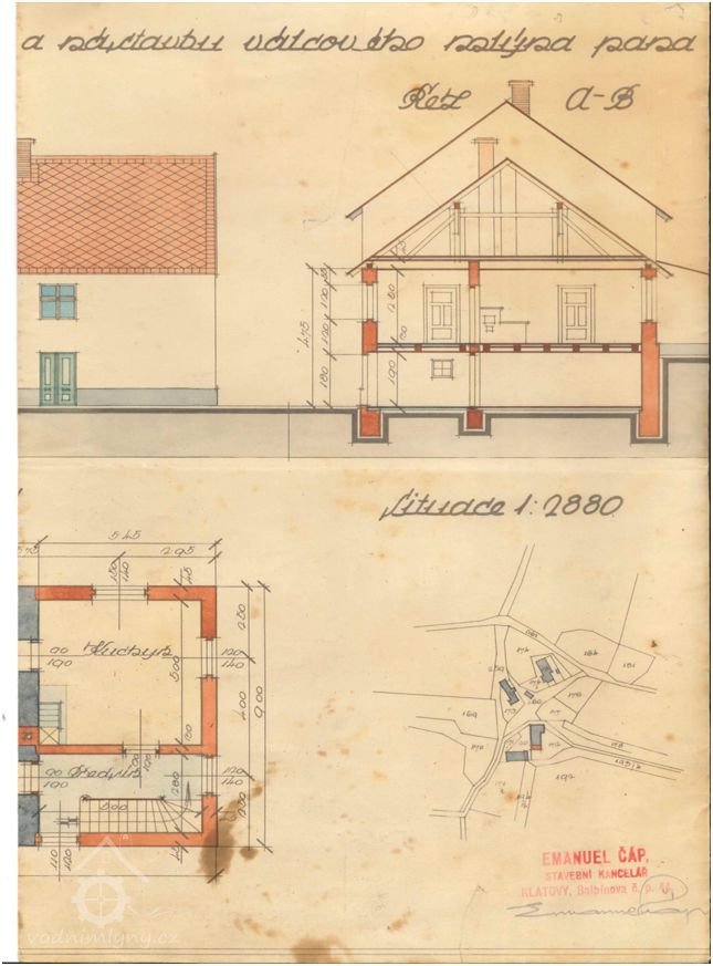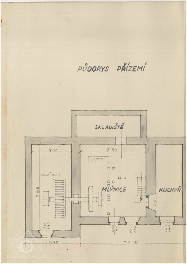 Popiso výkonu 1KS k vlastnímu osvětlení mlýna, stavení a hospodářských budov.