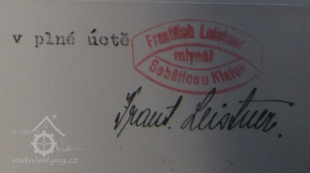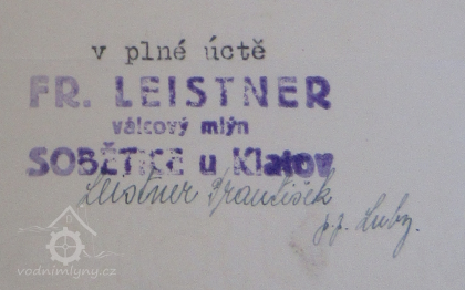 Nelze dohledat, zda a kdo na mlýně po smrti Josefa Pilmana hospodařil, ale z písemného prohlášení Rosalie Pilmanové ze dne 21. května 1921 lze vyčíst, že chce postoupiti mlýn Josefu Pilmanovi z Harantu č. p. 27 (dnes část obce Klenová č. p. 27) nebo Františku Leistnerovi. Rosalie se rozhodla postoupit mlýn svému synovci Františku Leistnerovi.