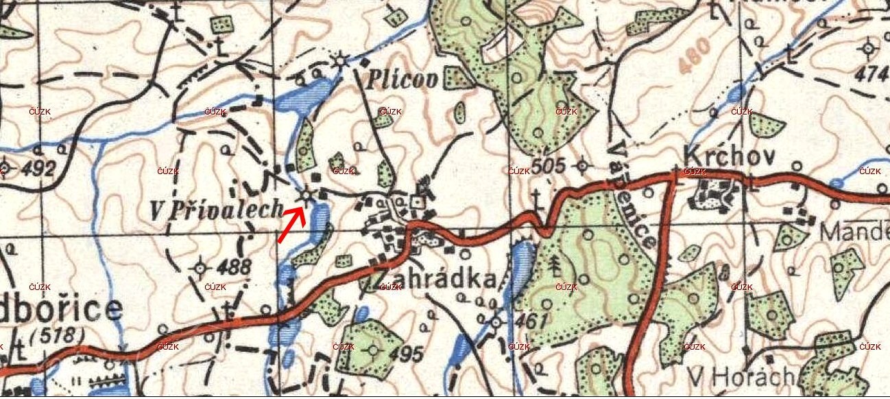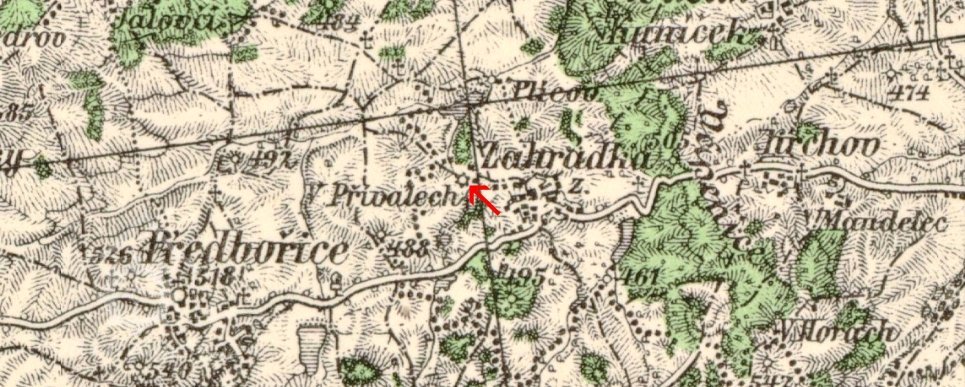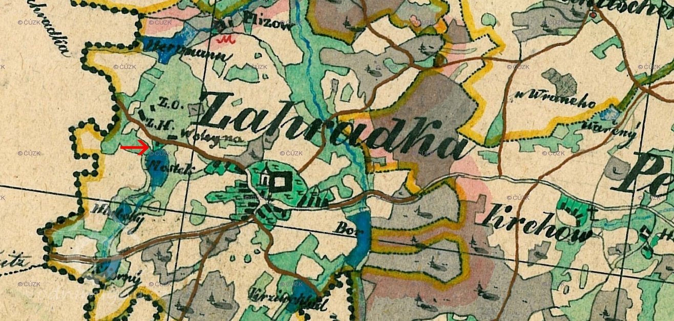26.10.1942 zasazen cejch u rybníka Mostek statkáře Čestrníra Langa - vysekaná rýha na hrázi s trojúhelníkem a letopočtem 1942 ČL