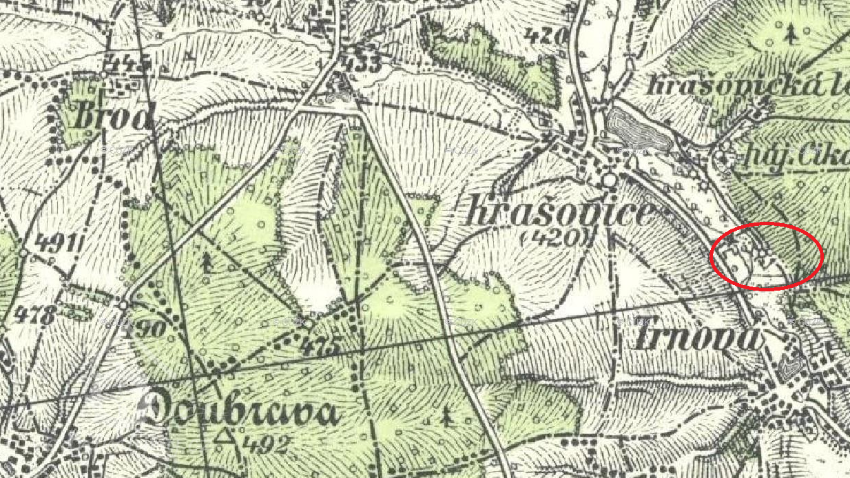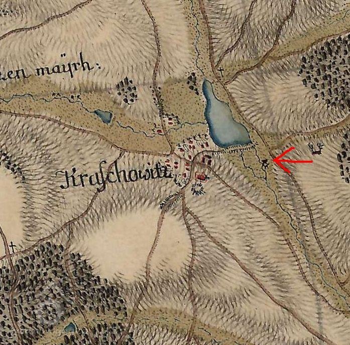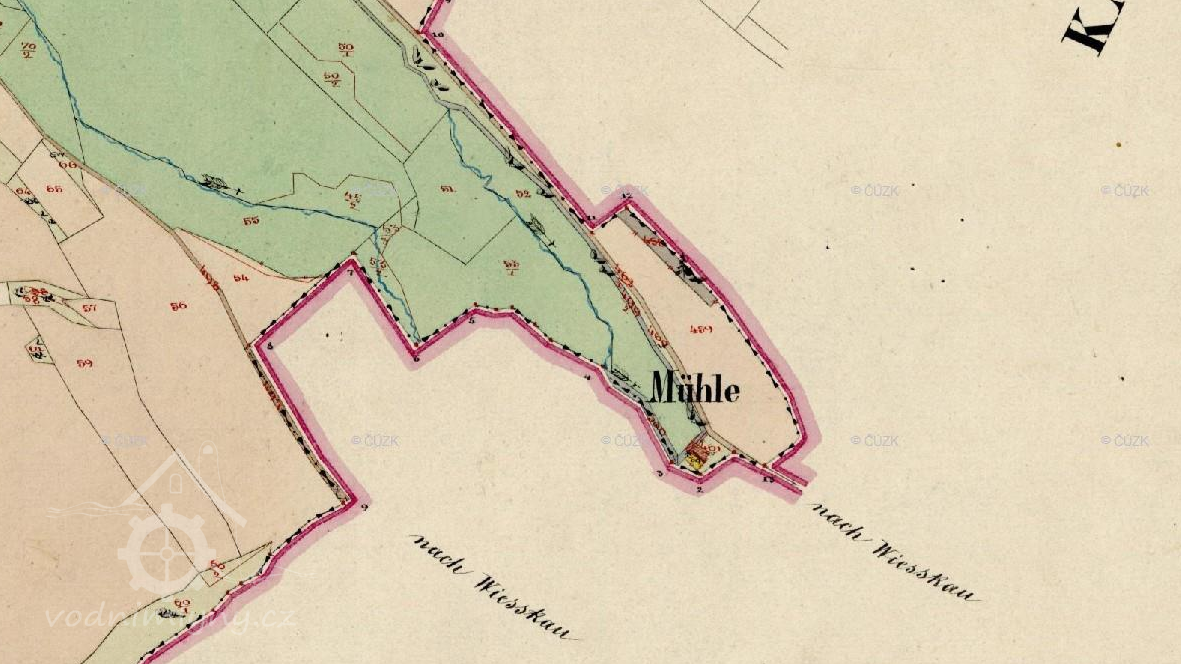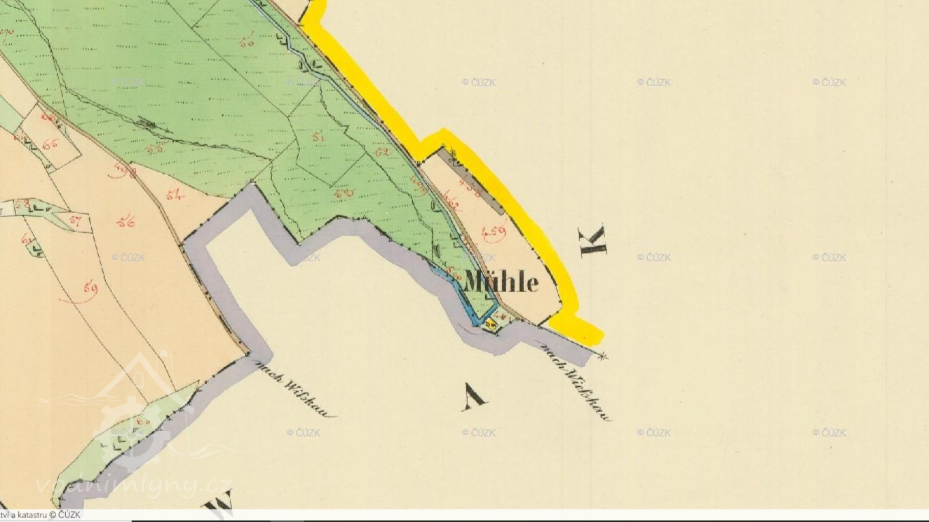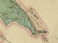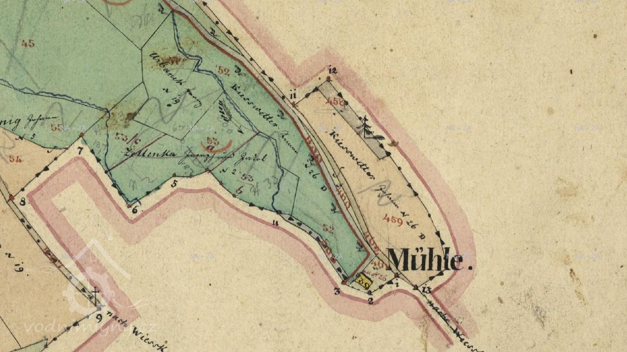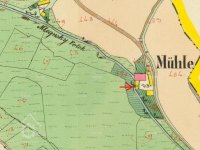 Na nejstarších vydáních mapy III. vojenského mapování je u horního objektu značka pila, u dolního značka mlýn. U pozdějších vydání jsou u horního objektu značky pila a mlýn, u dolního objektu značka mlýn. (Ringo)