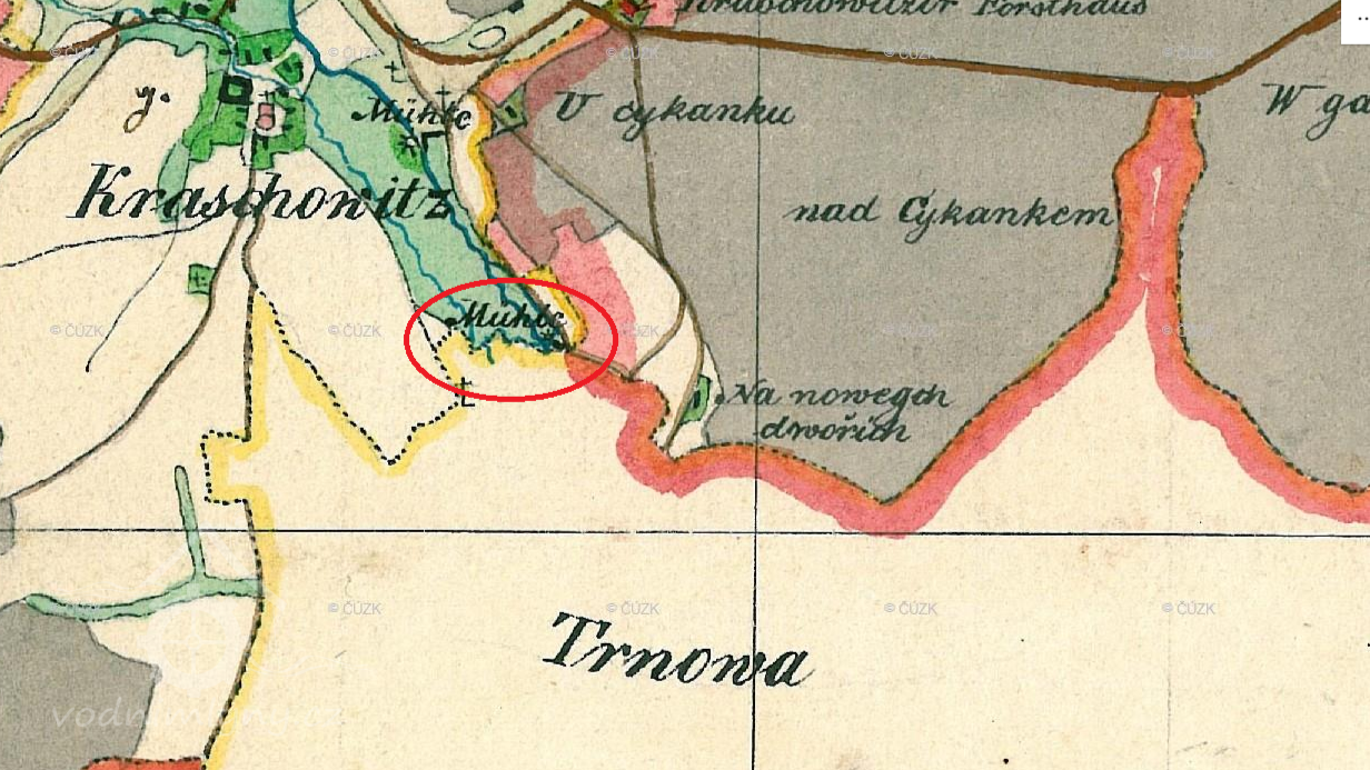 Při prodeji krašovského panství v roce 1879 se kromě jiného majetku uvádí též panský dvůr, pivovar a poplatný mlýn. Mlýn vlastnila rodina Kiesswettrova a mlelo se tu pouze žito.