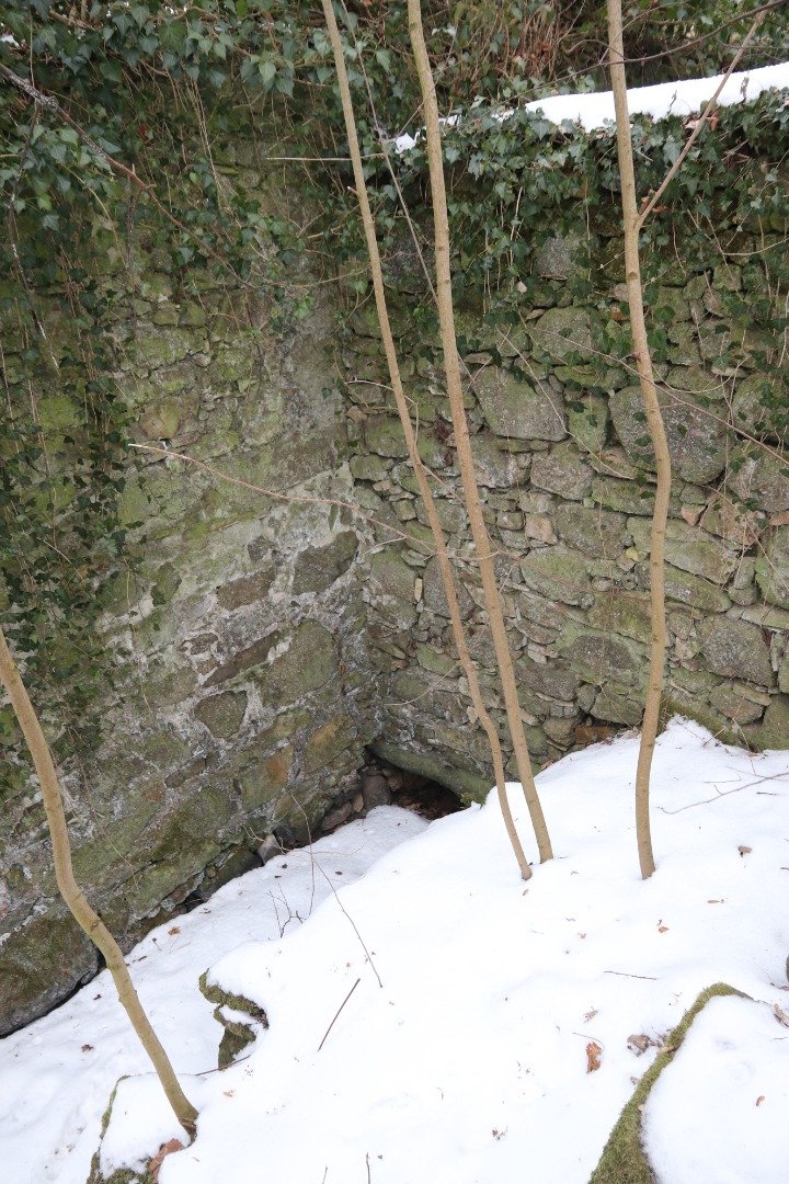 9.8.1879 zasazeno normální znamení na žulovém balvanu 19,3 m od budovy - železná kramle se značkou J.V. 1879.