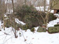 Druhé znamení na balvanu u zájezku na pravém břehu Brziny mezi náhonem a jalovým potokem.