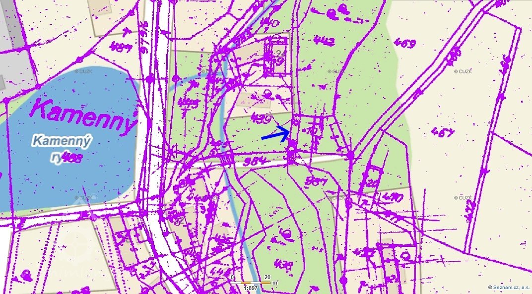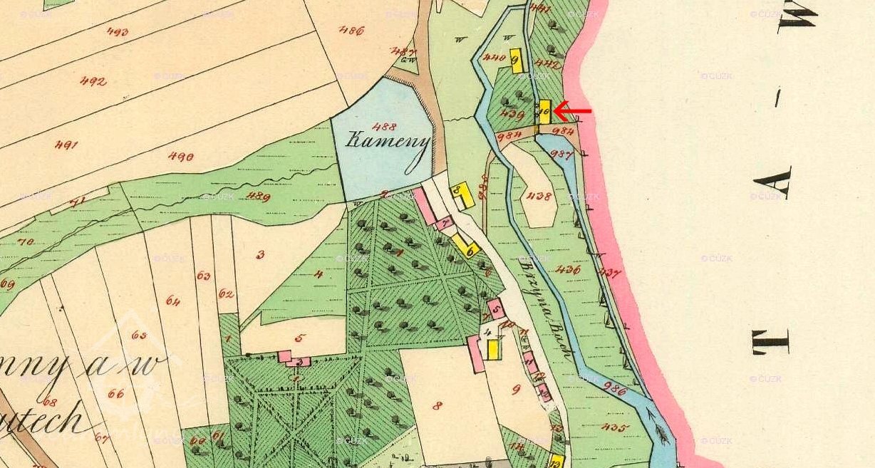 Starý, původně dřevěný mlýn pod Petrovicemi u panského Kamenného rybníka. Dnes zahrada s nepatrnou zástavbou.