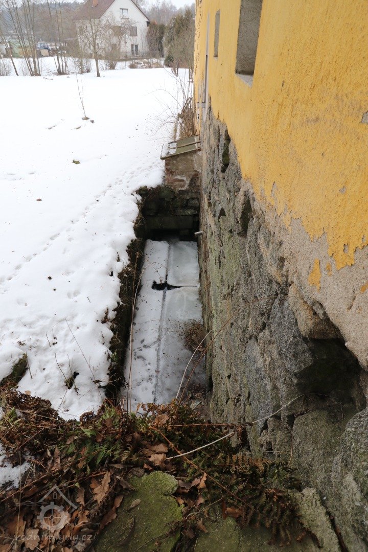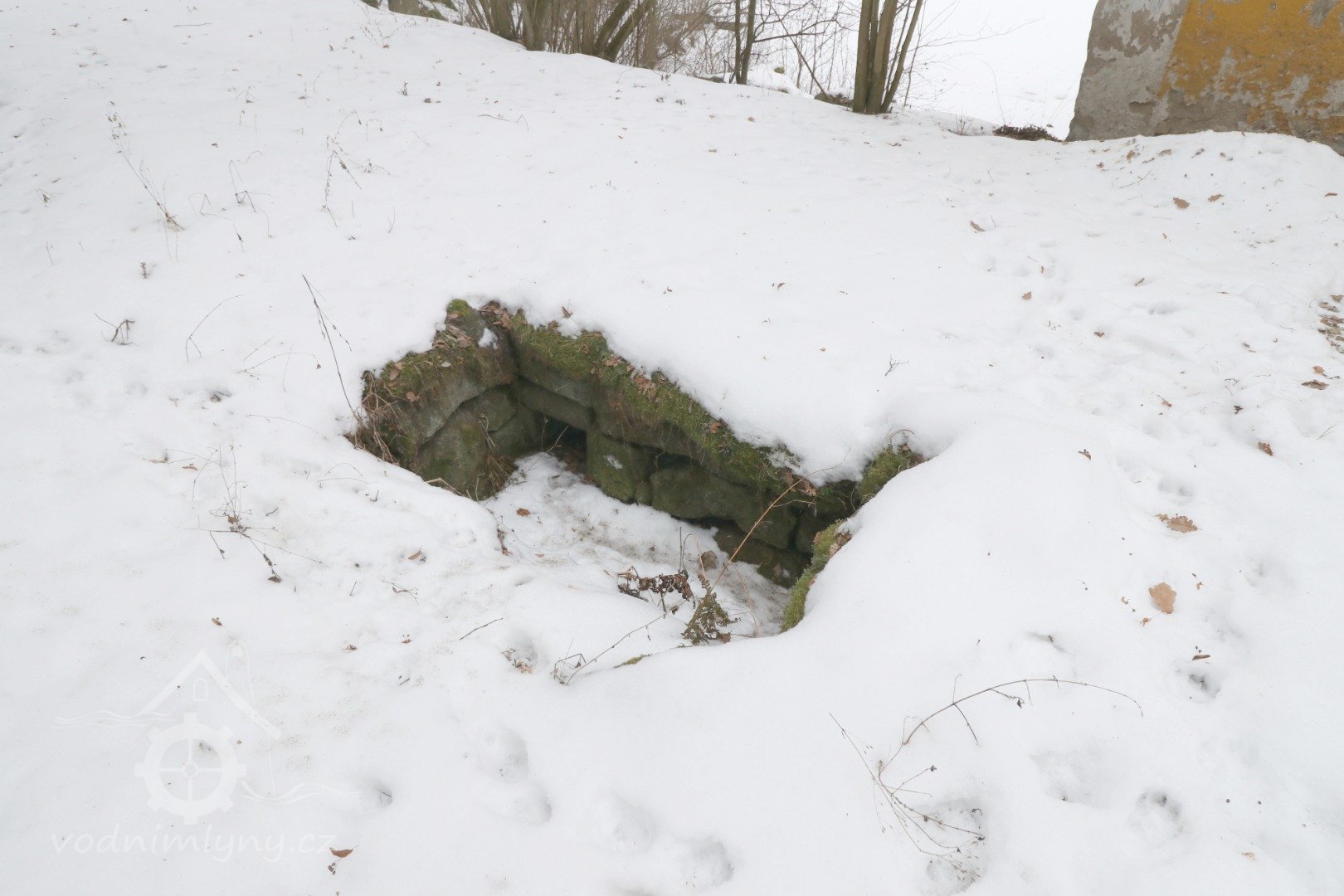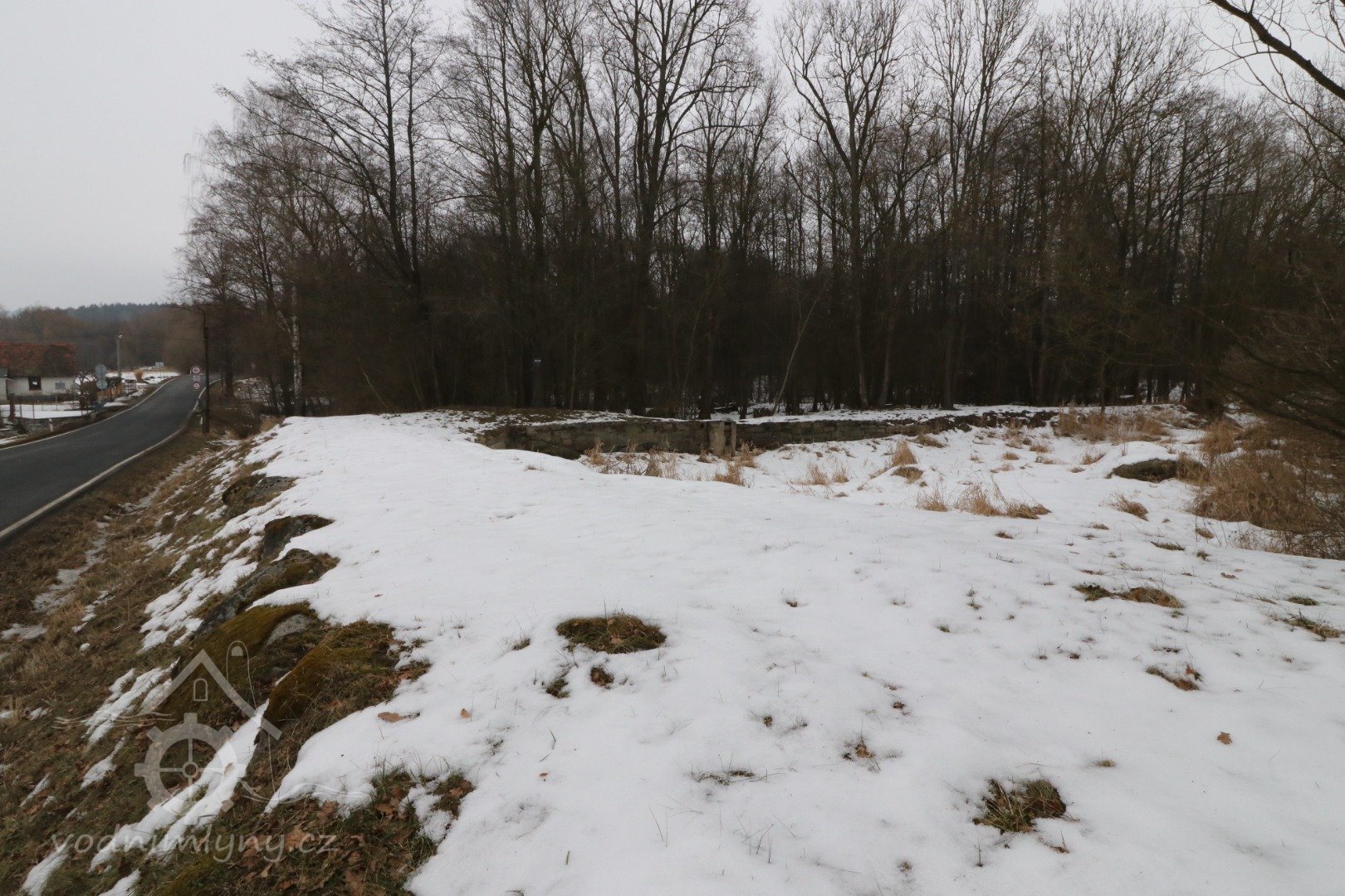 250 m dlouhý náhon přepažen akumulační nádrží s výškou hráze 2 m, zbytek zachován na pravé starně silnice naproti mlýnu.