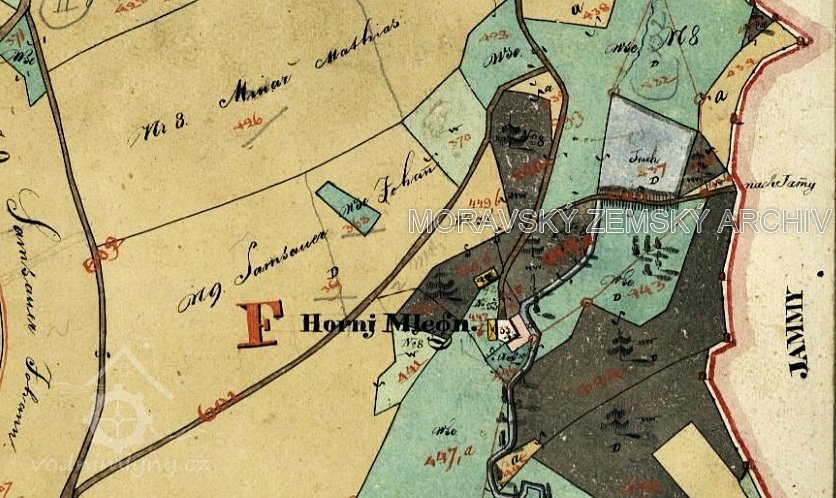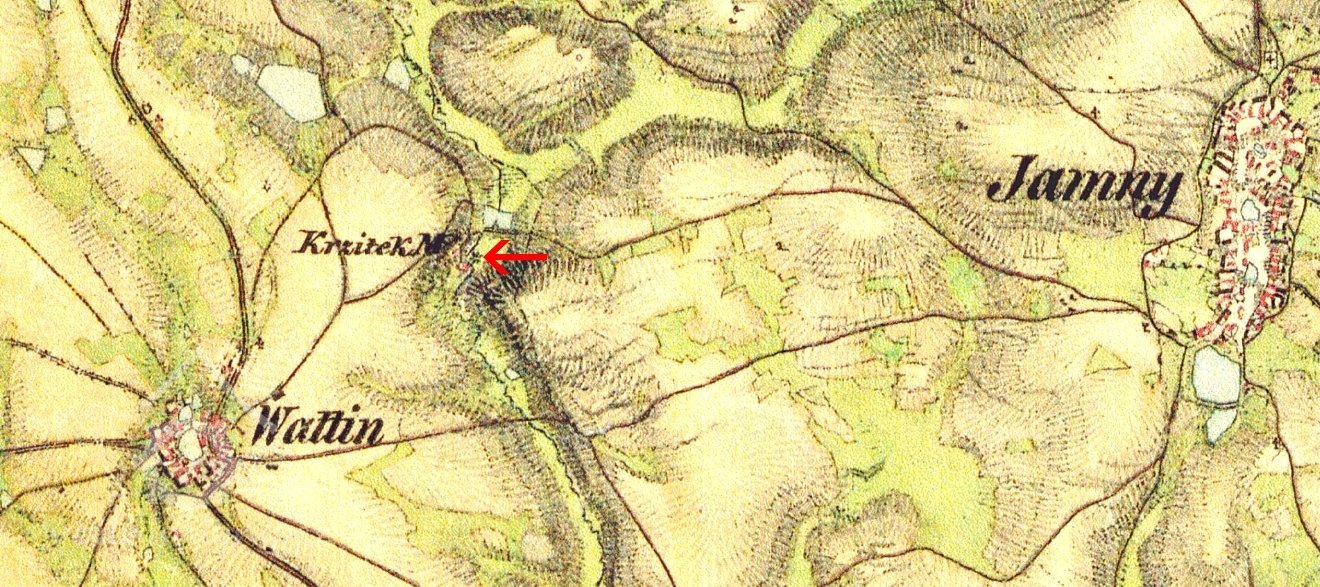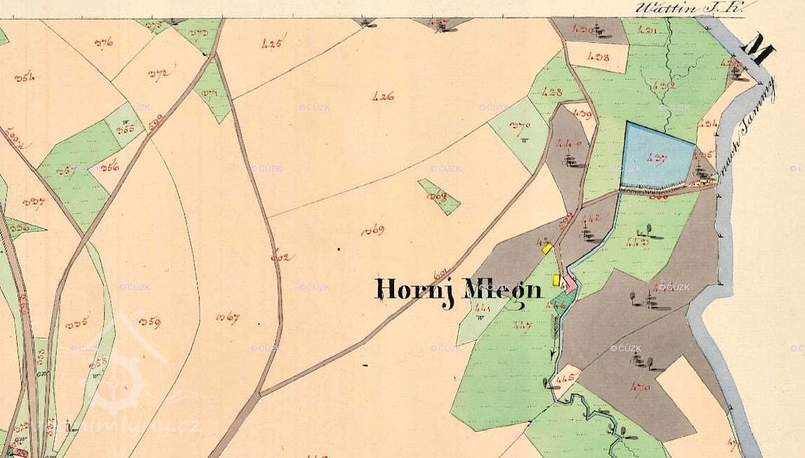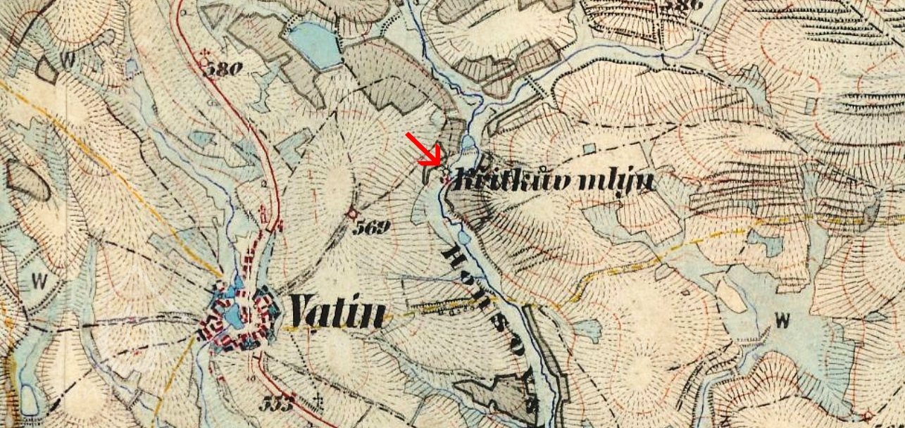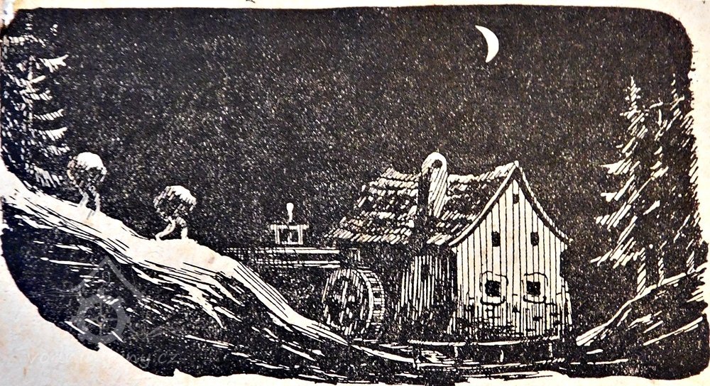 Starý zaniklý mlýn čp. 33 opředený strašidelnými pověstmi. Někdy se mu, oproti Klímovu mlýnu, říkávalo Horní mlýn. Zanikl někdy v polovině 20. století. Dnes je místo zarostlé a památkou na mlýn jsou pouze pověsti a stejnojmenný rybník.