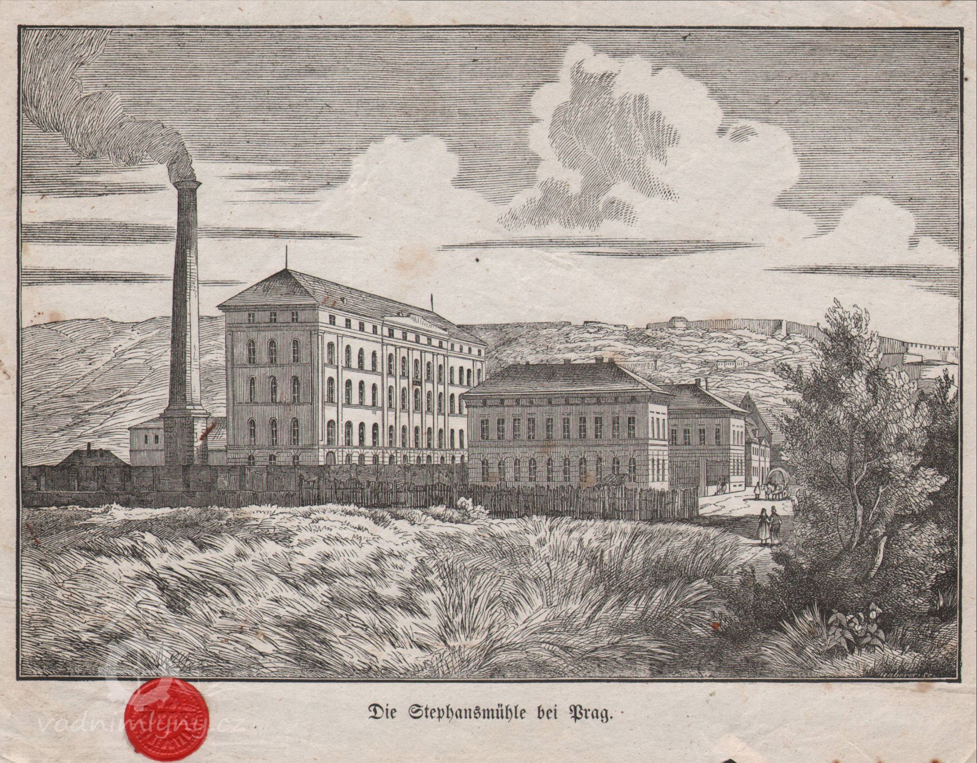 (...) A právě toho roku (1845) přijal se návrh Jeho Jasnosti knížete Jana Adolfa ze Schwarzenberku, aby se v Čechách, pro všeobecné dobro parní mlýny vystavěly a s velikou ochotností Jeho Jasnost přepustila společnosti, k vystavění parních mlýnů v Čechách zřízené, místa v levné ceně na Smíchově a v Lovosicích příhodně ležící. (...)