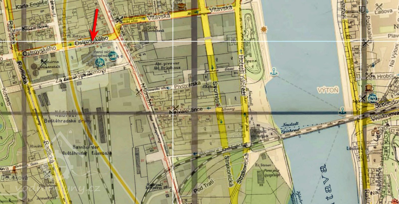 Potřebnou vodu opatřuje si mlýn přímo z Vltavy pomocí vlastního vodovodu, jehož vodostroj se nalézá na hořejším nábřeží pod č. p. 234.
