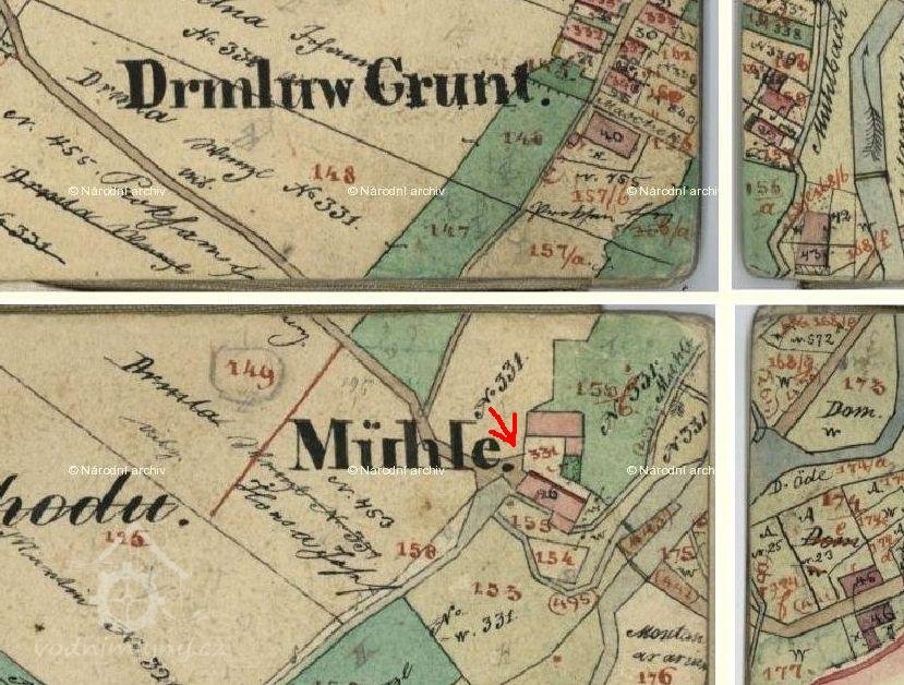 Začátkem 19. století - od roku 1804 - zde mlynařil Josef Drechsler, od roku 1817 Apolena Bartůňková a o rok později V. Drmla. Po něm zůstal název Drmlovo pole. To proto, že tento mlynář rozparceloval svá pole horníkům. Když roku 1837 V. Drmla zemřel, zdědil mlýn jeho syn Josef.