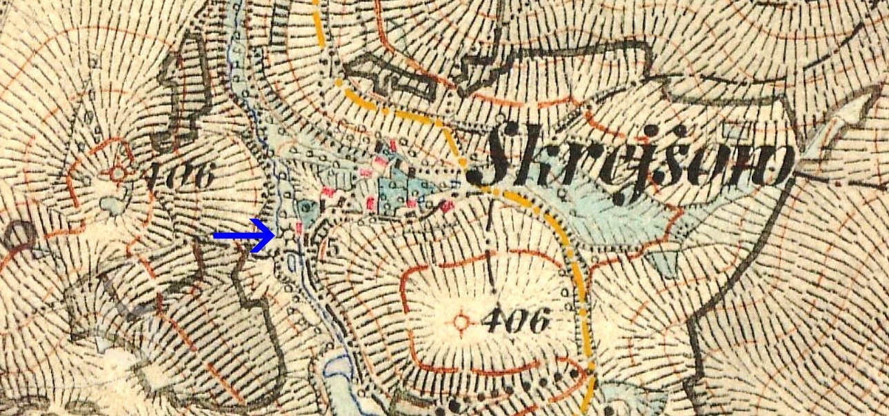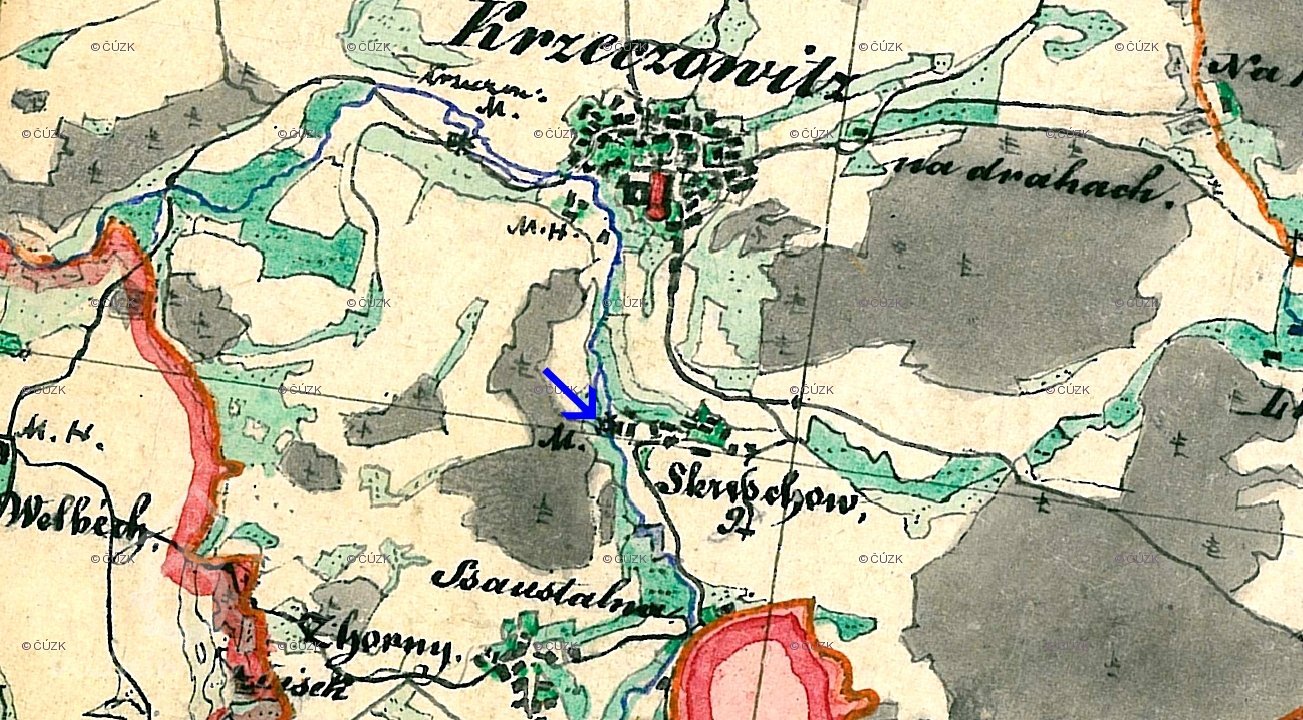 Bývalý mlýn pod Skrýšovem. Dnes je mlýn zcela přestavěn na rodinný dům a užíván k obytným účelům.