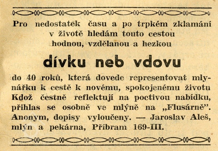 1651 Soupis poddaných podle víry: mlynář Matěj Krupička (55 let), manželka Kateřina (50), syn Tomáš (16), tovaryš mlynářský Jiří Palas (18), všichni svobodní katolíci