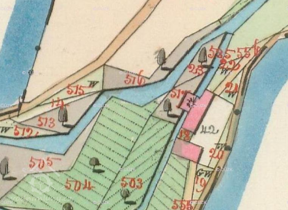1909 žádost o povolení zřízení trkače: "Trkač zřízen býti má pod tímto vyhořelým mlýnem ... a má se ním čerpati voda z potoka Zákolanského, ku pohánění trkače slouží železné potrubí, vedené z tohoto mlýna..."