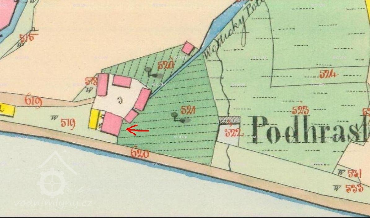 Popis1930: 1 kolo na svrchní vodu, hltnost 0,162 m3/s, spád 8,048 m, výkon 11,2 HP