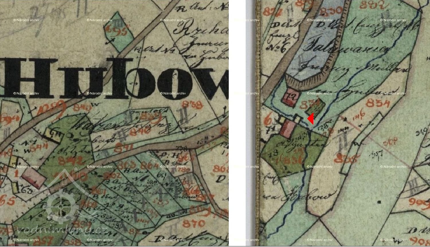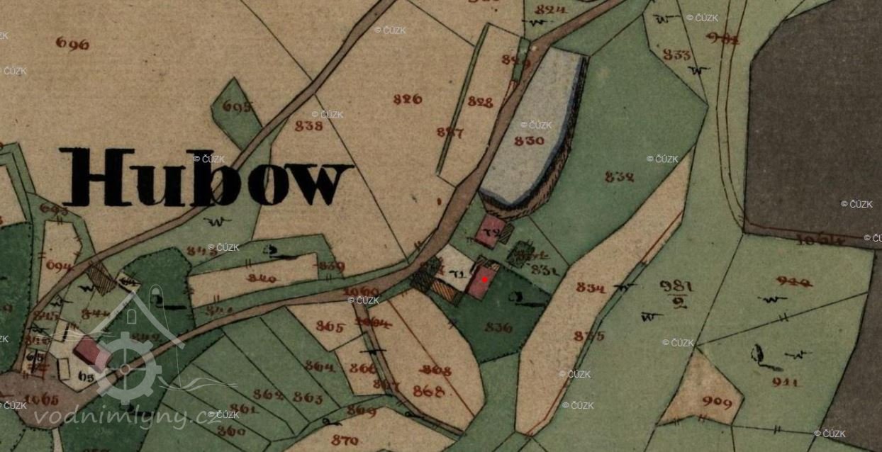 Mlýn je matrikami doložen v r. 1650, kde je uveden Jan Hamáček z mlýna Hubovskýho s manželkou Dorotou Dorota