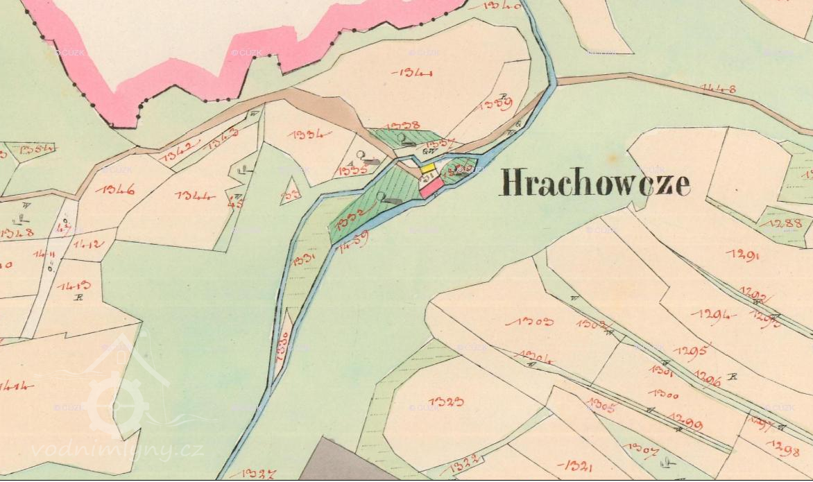 Popis1930: 1 kolo na svrchní vodu, hltnost 0,105 m3/s, spád 5 m, výkon 4,54 HP