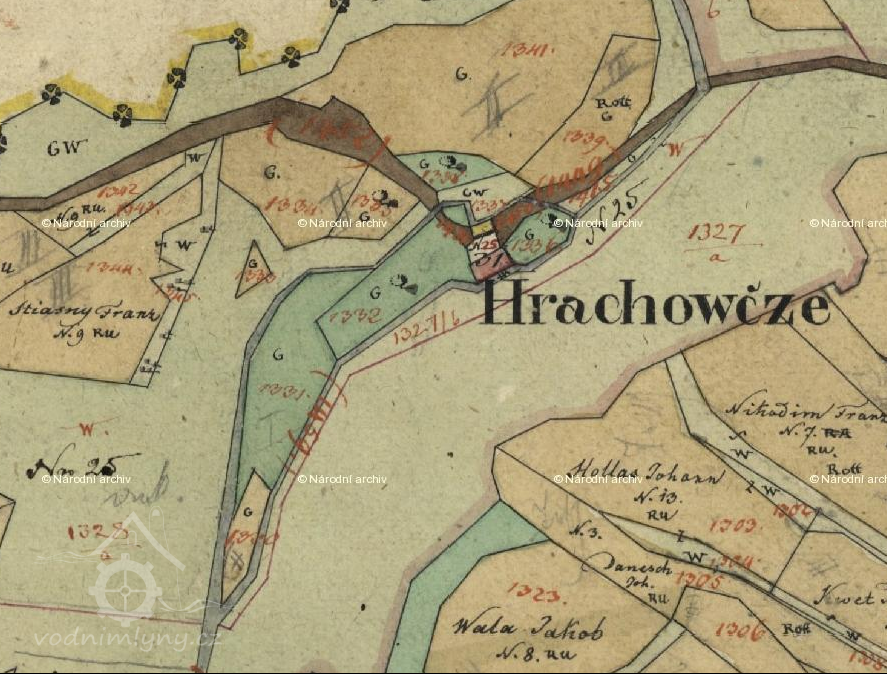 od Jiráska koupil Kaftan, nájemce Jan Hemele od Bechyně (měl se synem pronajat mlýn 27 let, platil 150 zl. ročně a dával 200 kg jablek. Opravy platil do výše 73 zl.)