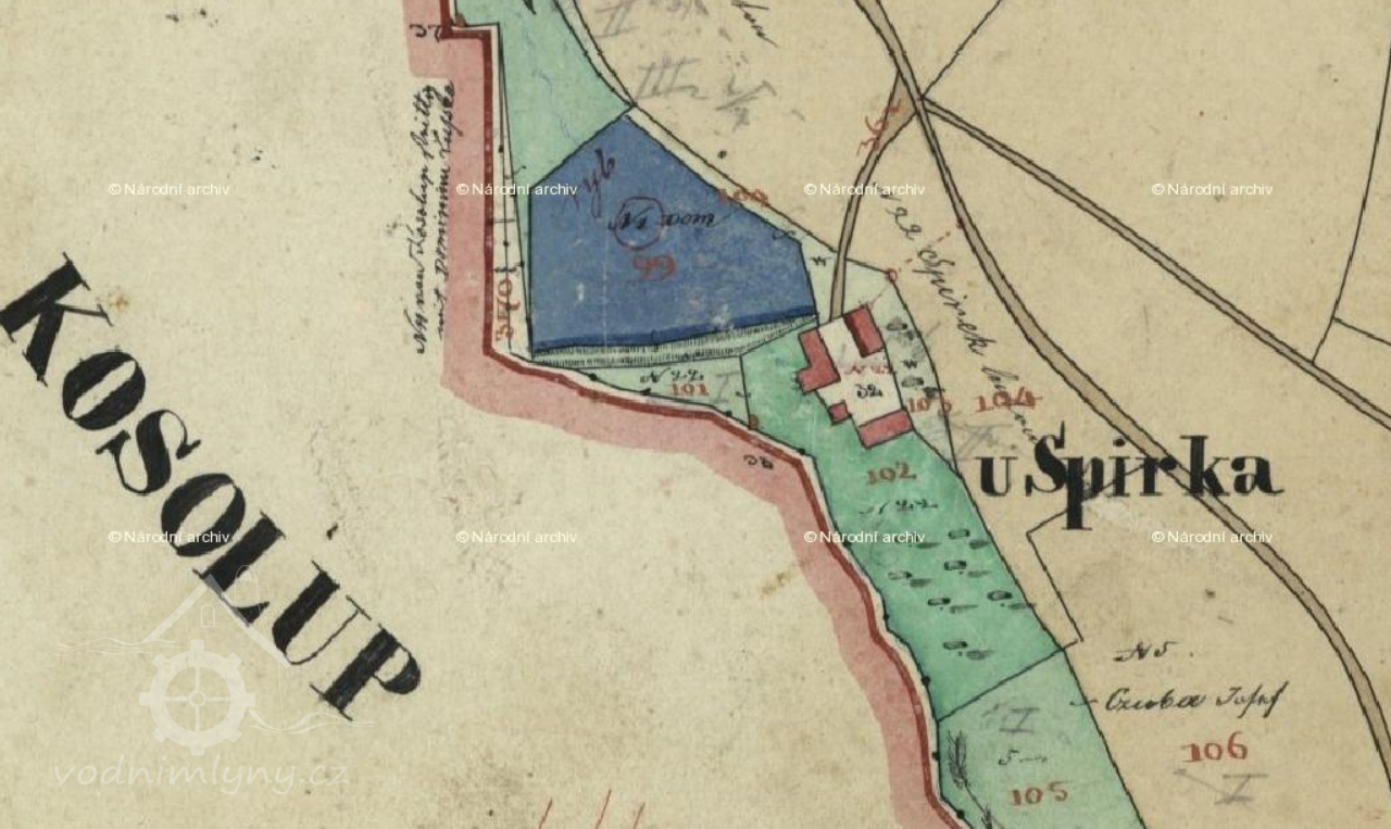 1505 konvent obutých augustiniánů u sv. Tomáše na Malé Straně v Praze povolil svému poddanému Janu Kopekovi z Kozolup, aby si postavil mlýn pod lužeckým rybníkem, přičemž pro něj mohl brát vodu z místních pramenů, "ale beze škody na polích a lukách, za kteréžto povolení od sám a jeho potomci povinni budou dávat konventu ročně dvě kuřata, míru mouky a na hotovosti 20 pražských grošů"