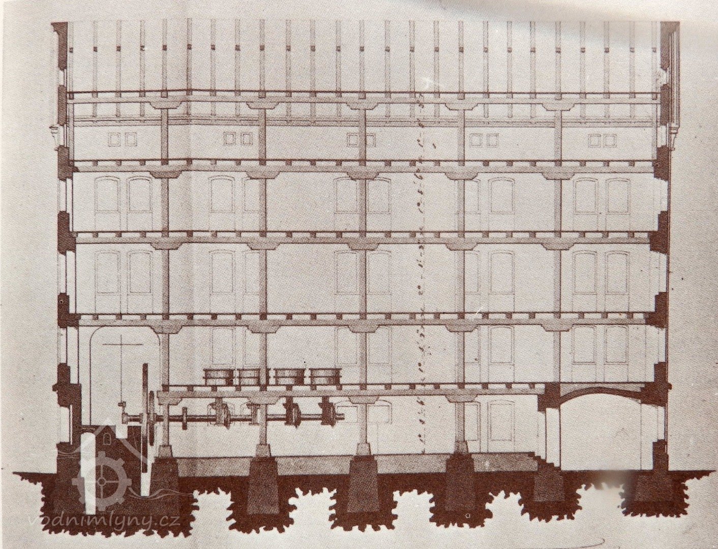 Mlýn částečně závislý na vodě z Chrudimky. Plán z roku 1855 dokládá budovu o čtyřech podlažích, ve kterých mělo být umístěno zařízení velkého uměleckého mlýna. K úplnému vybavení mlýna však nedošlo a mlelo se pouze na obyčejných složeních.