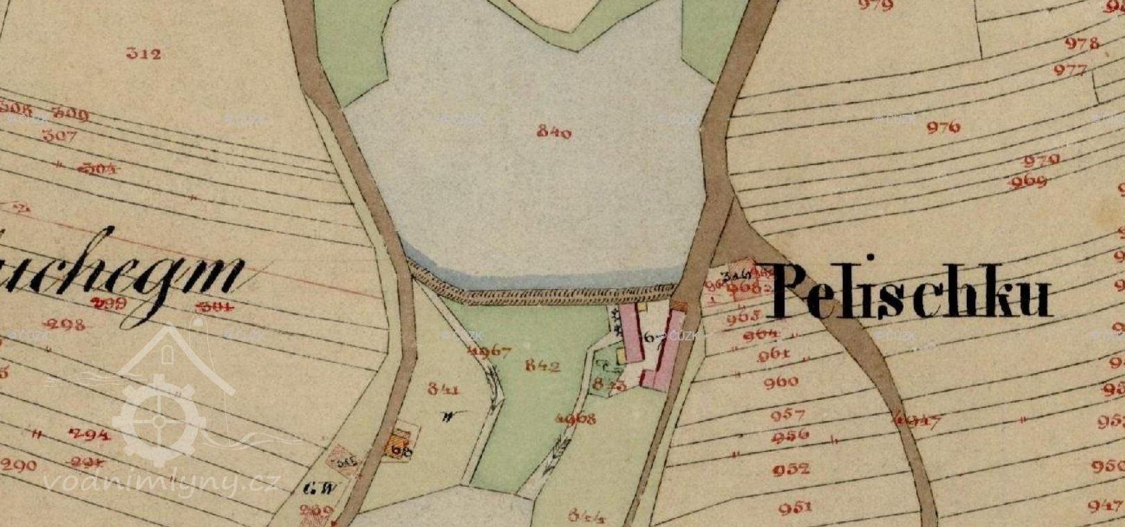 Dle vyšetření obecního úřadu je roura, kterou se táhne voda z rybníku na mlýn čtyřhranná 30 cm široká a 20 cm vysoká a korečky vodního kola jsou 20 sm hluboké. Vodním kolem se též pohánějí stoupy.