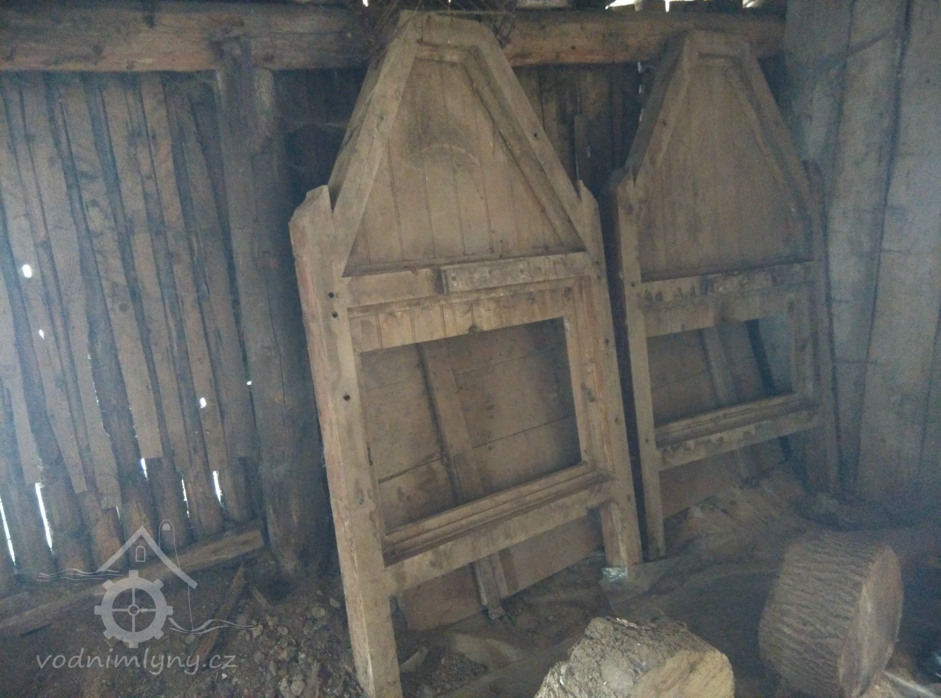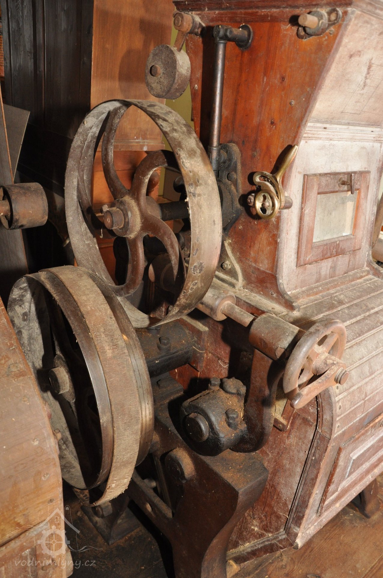 - Na prvním podlaží stojí velmi vzácně dochovaná válcová mlecí stolice (rýhované válce v dřevěné skříni) od firmy Karel Závodský - Želetava. Tento stroj starého konstrukčního systému byl vyroben mezi roky 1888 až 1890, do mlýna byl pravděpodobně osazen ale až později. Vedle válcové stolice je taktéž velmi vzácná průchodová loupačka od firmy Jindřich Světnička - Strměchy u Pelhřimova (pravděpodobně vyrobená mezi rokem 1915 až 1925). Dále se zde nachází kombinované filtrační zařízení od aspiratéru loupačky systému autokap/spirokap. V podstřeší dochován jeden hranolový předvysévač s demontovaným pravoúhlým převodem, rozebrané kapsové dopravníky a uskladněno je i torzo velkého moučného hranolového vysévače (z rotoru někdo udělal stolek). Čistící hranolový vysévač bez dochovaného koukolníku lze spatřit v podkolí. Vysévače jsou pravděpodobně taktéž od firmy Jindřich Světnička - Strměchy u Pelhřimova. Krupičný stroj není dochován vůbec. David Veverka - sp. restaurátor starých strojů.