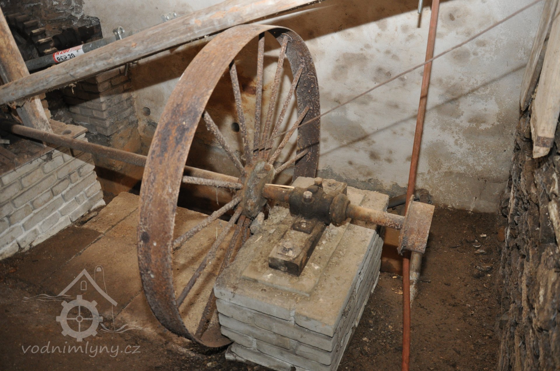- V podkolí nachází se částečně dochovaný převod a transmise. Pracovalo zde celodřevěné vodní kolo na vrchní vodu osazené na dřevěné hřídeli, která otvorem procházela dovnitř mlýnice, osazená s kovovými čepy v kluzných ložiskách. Na dřevěné hřídeli bylo paleční kolo s čelními palci (tyto dřevěné části nedochovány, hřídelový otvor zazděn), palce tohoto kola zapadaly do pastorku na předlohové hřídeli, na které je osazeno litinové paleční kolo (s bočními palci), které tvoří s pastorkem na hlavní transmisi pravoúhlý převod. Na hlavní transmisi je několik litinových řemenic, hřídele jsou uloženy v ložiscích kroužkomazného systému.