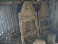 Vzácně dochovaná soustava lanového převodu k pohonu zemědělských a ostatních strojů. Zachována ve stodole původní mlátička. -- D.V.