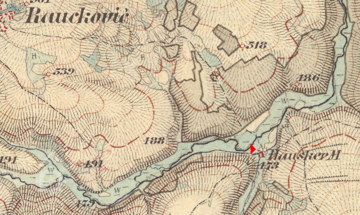 na ostění dveří vytesán letopočet F.W. 1822 (František Wrzák)