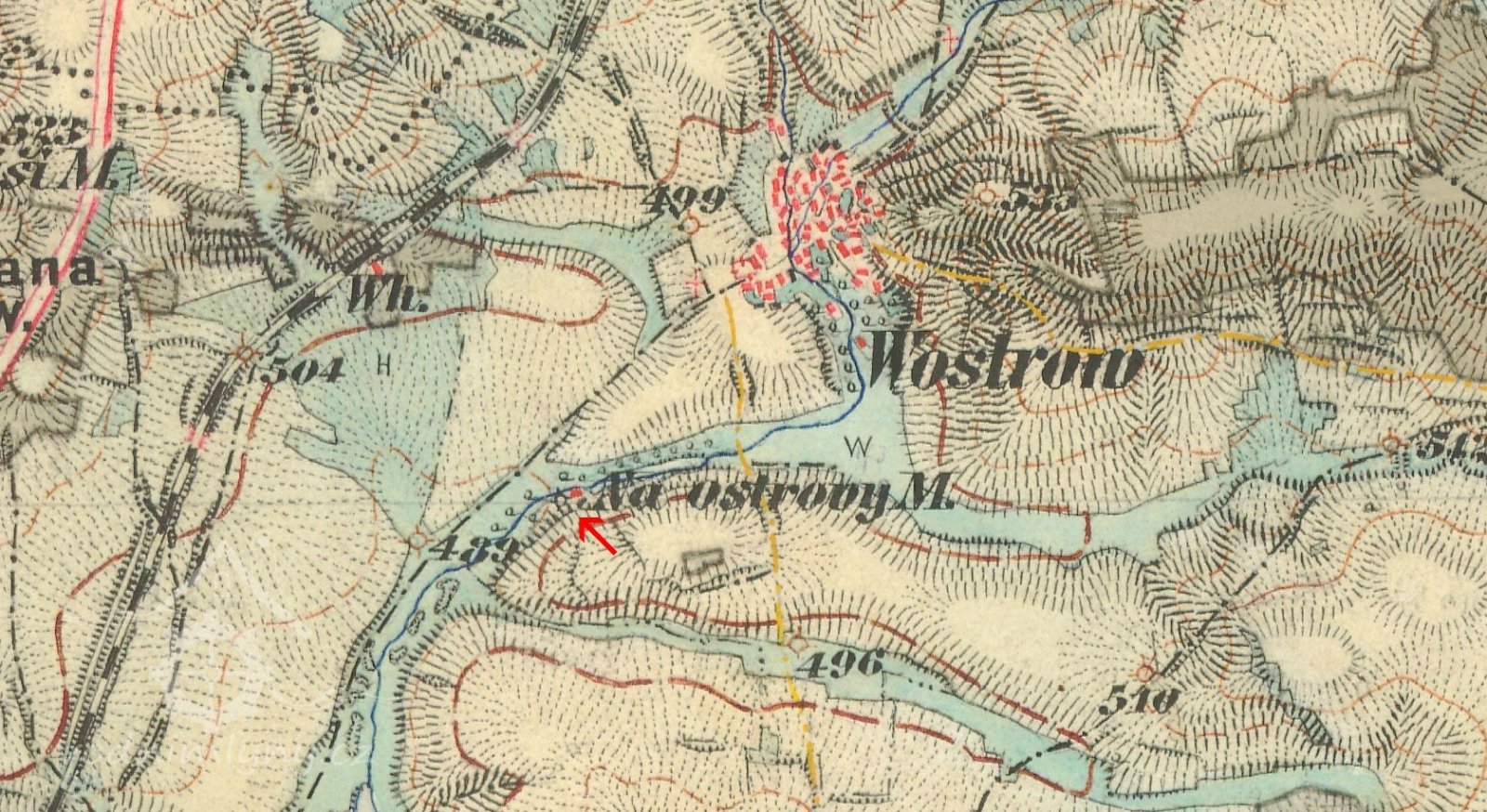 Je znázorněn na I. vojenském mapování a dále též na III.