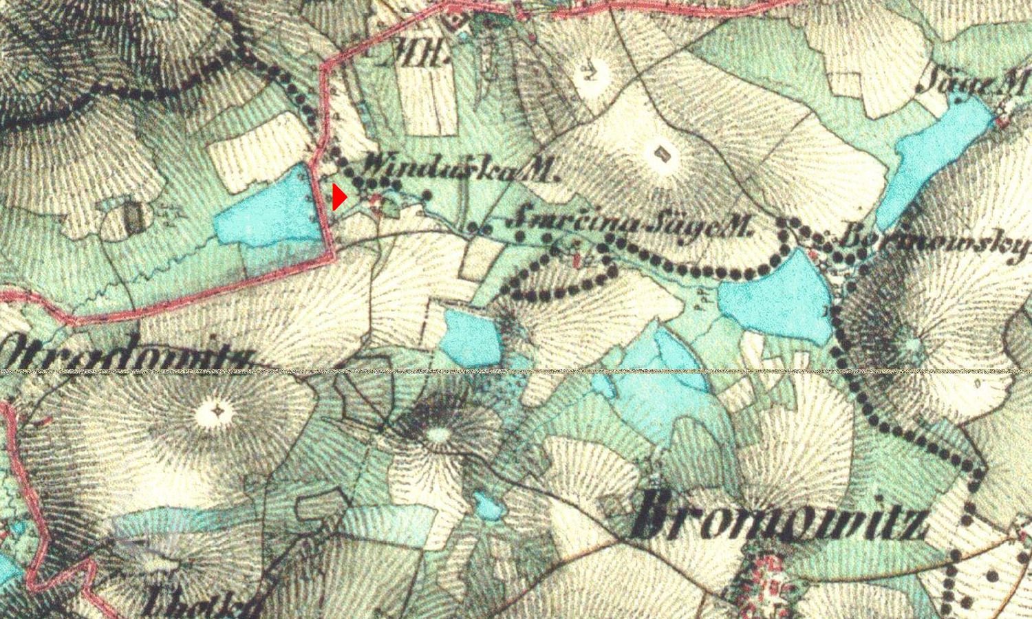 Tyto tři mlýny (Vinduška, Skřivánek, Pilský-pozn.editora) jsou původem prastaré: připomínáť se, že 2. října 1385 prodali Ludvík z Otradovic a Beneš z Jankova své dědictví v Otradovicích „dvůr poplužní s poli, lukami, lesy, mlýny a rybníky... Divišovi z Talmberka a Věnkovi z Otradovic a jich dědicům za 40 kop grošů....“