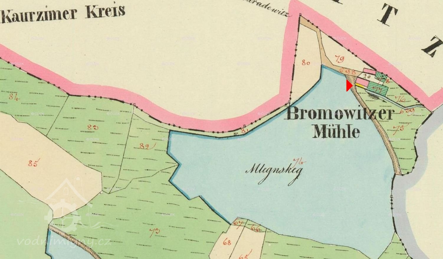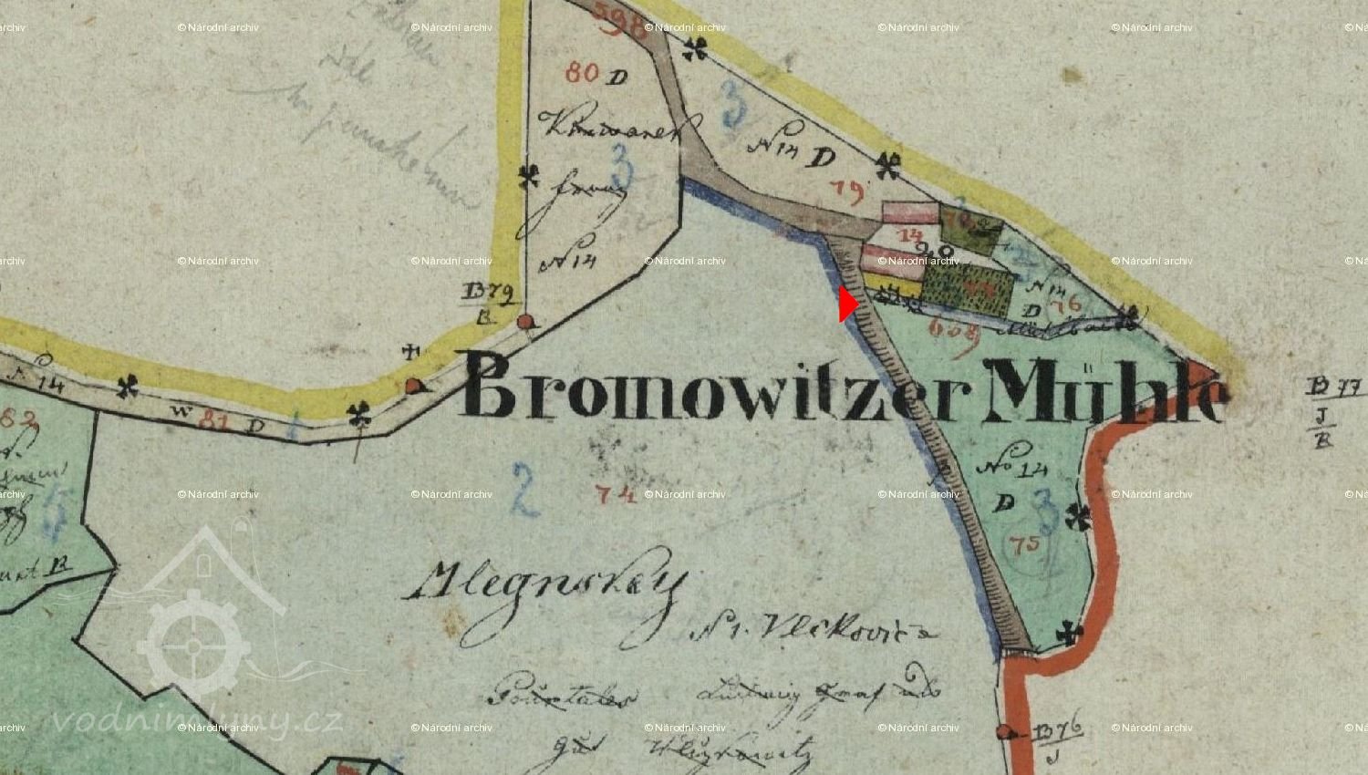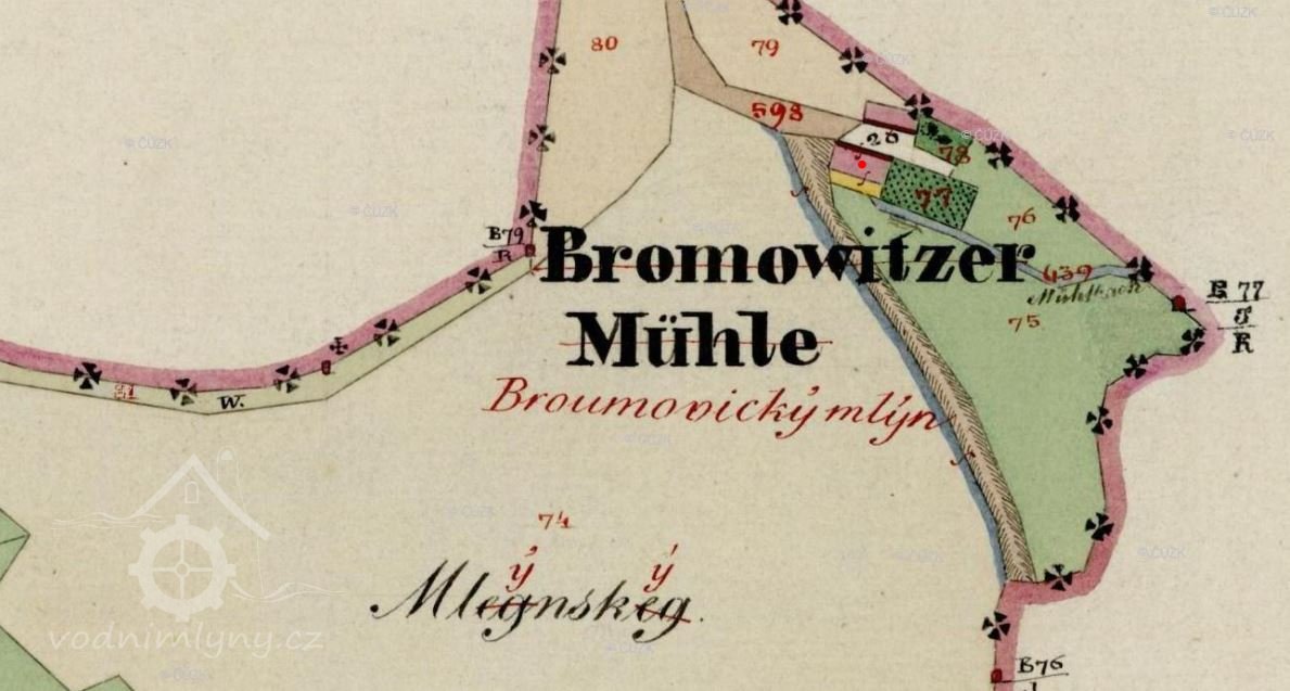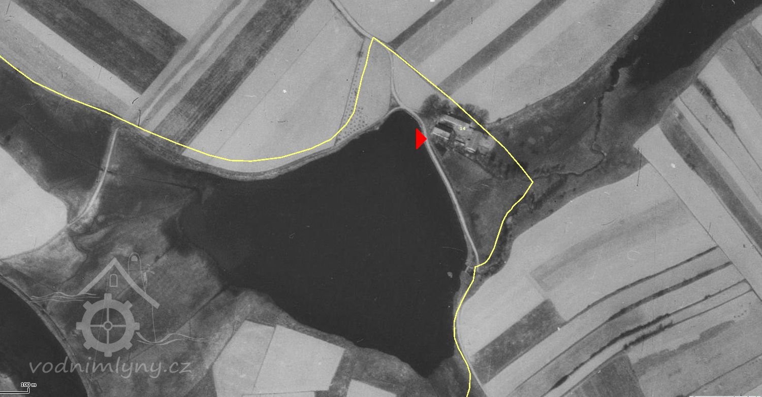 Mlýn o jednom kole zachycen v odhadu statku Vlčkovice ze dne 2. 7. 1653