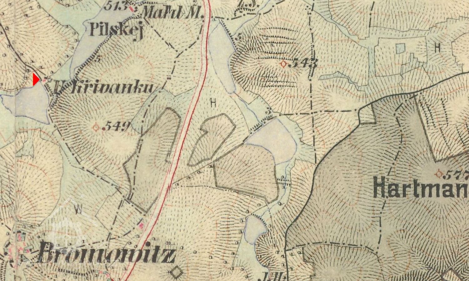 Habart: „Skřivánek“ patří k osadě Broumovicům, má pouze český kámen. Majitel V. Krampera.
