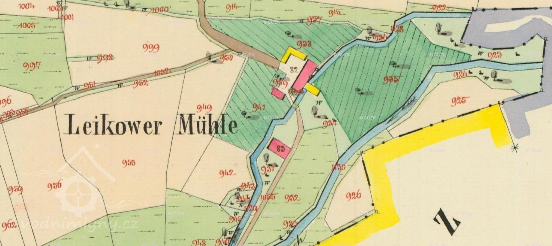 Před r. 1948 koupil p. Pekař mlýn majitele mlýna (p. Buka). Po znárodnění mlýn přešel do rukou státu a rodině Pekařových zbyl obytný dům (budova s původní omítkou) (HŠ)