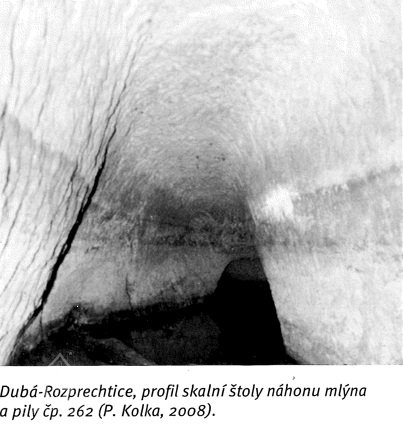 Datace strouhy A.o. 1528 u vyústění štoly, 2006, © Kamil Podroužek, (Prvky na obrázku: náhon)