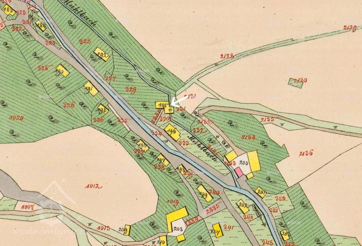 Popis1930: 1 kolo na svrchní vodu, hltnost 0,1 m3/s, spád 5,8 HP, výkon 5,2 HP