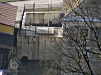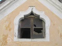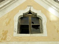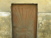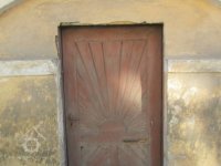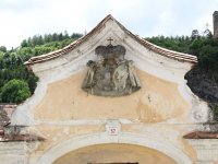 Vstupní branka s rovným nadpražím svou horní částí zasahuje do mělké niky půlkruhového tvaru, orámované archivoltou a klenákem. Po stranách vchodu jsou pilastry s plochým dříkem a profilovanou hlavicí.