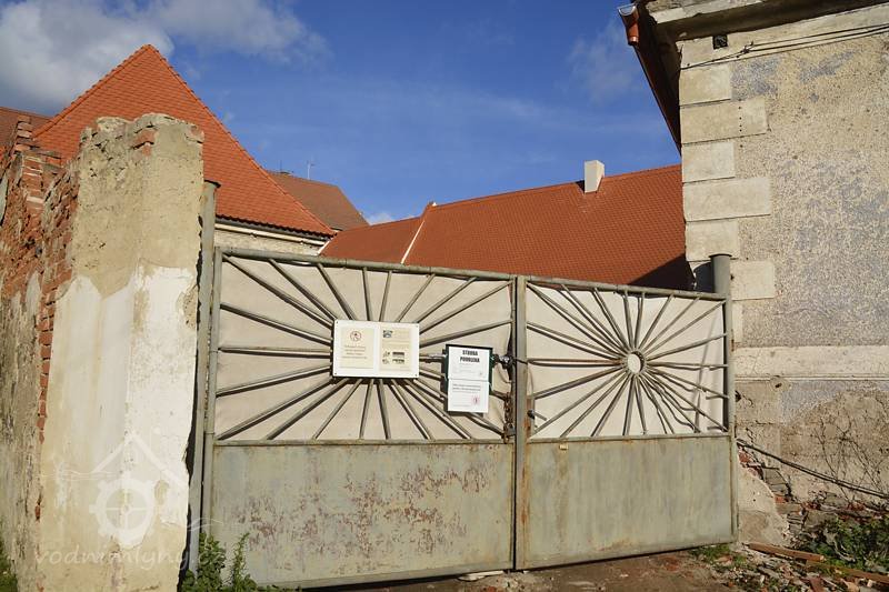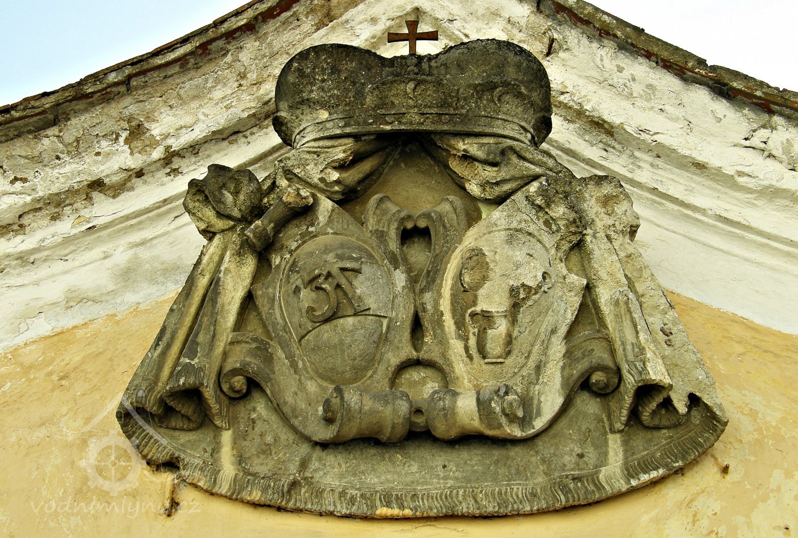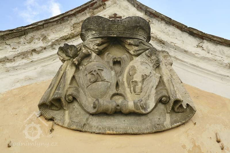 Barokní vstupní brána s erbovním znakem a navazující ohradní zdí je hodnotnou architektonickou součástí souboru budov vodního mlýna.