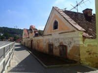 Ze západní strany situovaná jednopatrová budova uzavírající dvůr lichoběžníkového tvaru. Objekt vsazený do svažitého terénu se sestává ze dvou stavebních fází. V severním rohu se nachází jednoprostorová obytná část s výrazným průčelím orientovaným směrem do ulice. Toto průčelí je prosvětleno dvěma obdélnými okenními otvory. Profilovaná průběžná římsa odděluje trojúhelný štít s bohatě tvarovaným na osu umístěným okenní otvorem. Přístup do této části je umožněn ze východní strany jednoduchým obdélným vstupem. Nároží objektu je náznakem v omítce bosováno. Novější jižní část sloužila jako chlévy. Tato části je přístupná z východní strany dvěma obdélnými vstupy mezi kterými jsou umístěna půlkruhově zakončená okna. Nároží objektu je zvýrazněno v omítce naznačenou bosáží. Podstřešní profilovaná římsa nese částečně valbovou střechu.