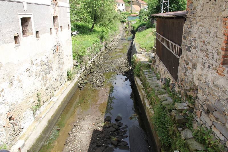 Historické technické vodní dílo. Jez zadržující vodu pro náhon nedalekého vodního mlýna, popřípadě jako hráz nádrže pro potřeby hradu v době obléhání.