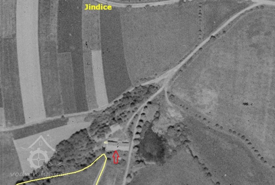 Na leteckém mapování z roku 1954 budova mlýna ještě stojí.