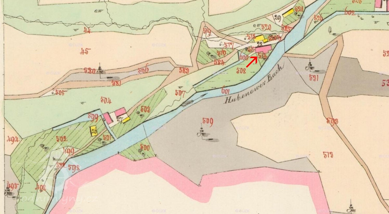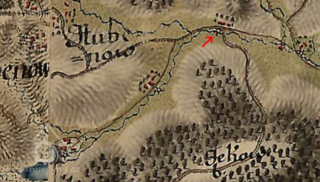 1610 Urbář křížovnický: Vít, hořejší mlynář, hospodaří ve mlýně o 1 moučném kole, má povinnost dávat vrchnosti o lovu 1 pecen chleba a 1 věrtel tluče.