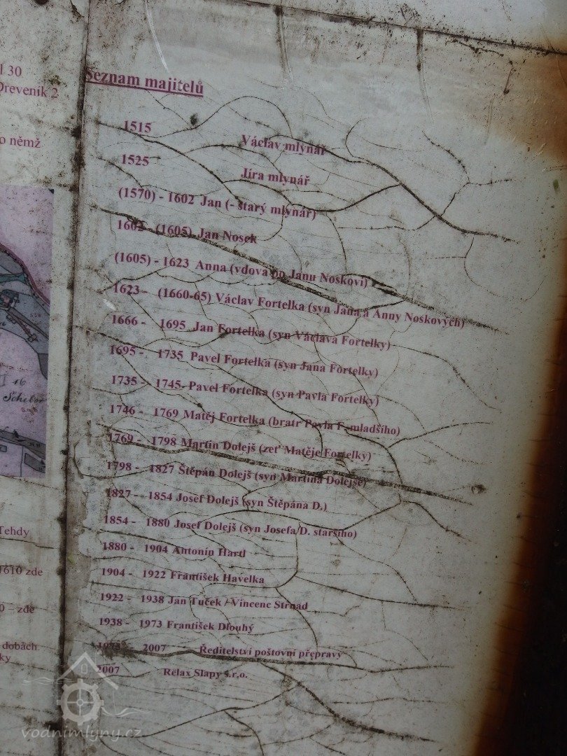1654 Berní rula: Václav Fortelka má mlýn o jednom kole, k mlýnu náleží 12 strychů polí, na jaře osívá čtyři, na zimu dva. Chová da potahy a jednu svini, krávu neměl, ač mohl držet dvě.