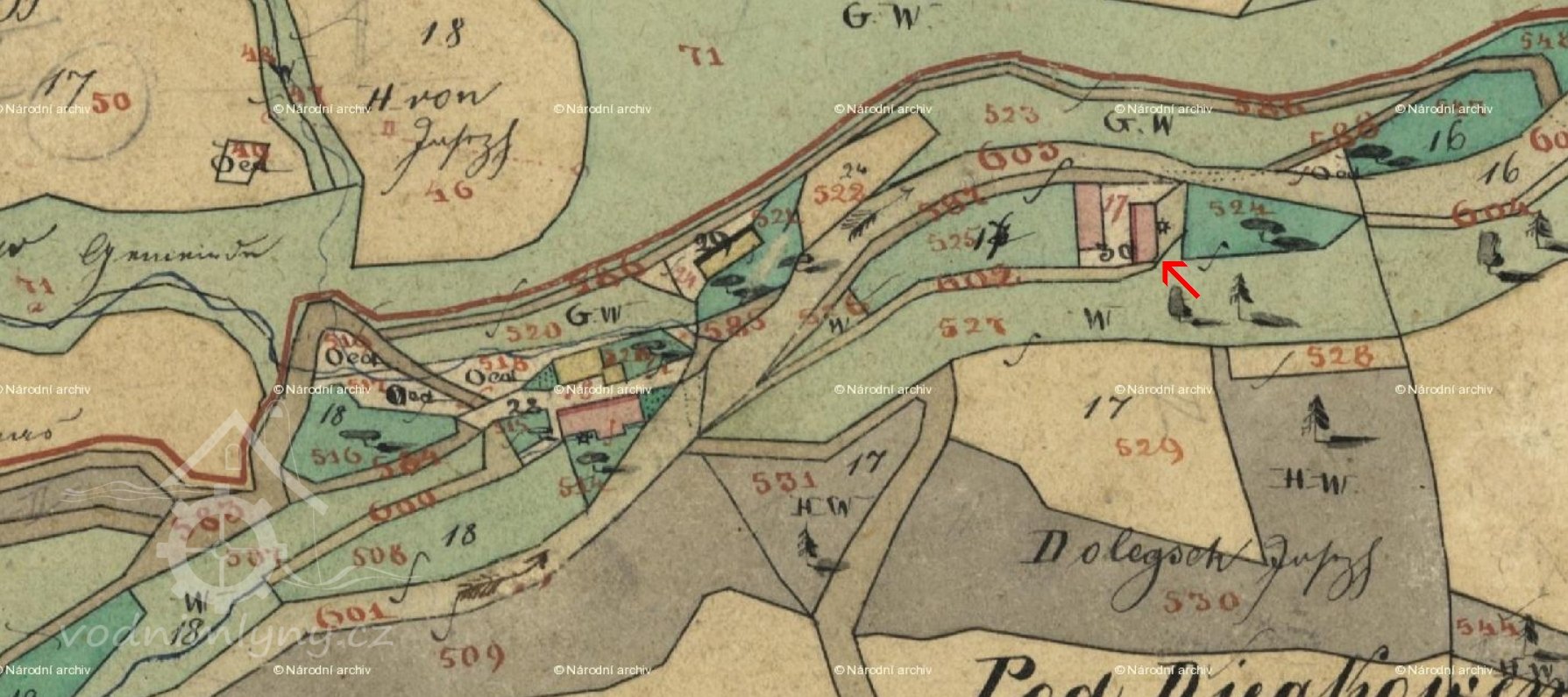 1718 Tereziánský katastr: Pavel Fortelka má mlýn o jednom složení na nestálé vodě, 14 strychů polí na špatné půdě, chová dva voly, dvě krávy, dvě jalovice, dvě ovce a dvě svině.