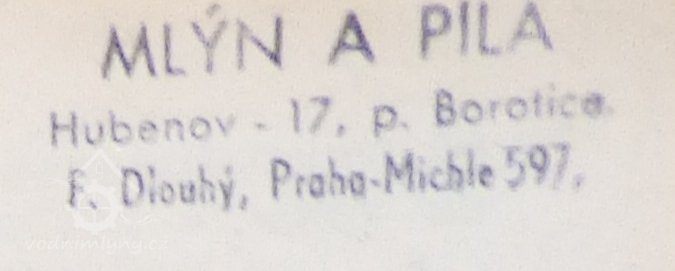 1610 Urbář křížovnický: Václav Říha, mlynář má 1 lán polí, úroku platí 20 gr. míšeňských o sv. Jiří a 25 gr. o sv. Havlu, krom toho z kopaniny 15 gr. a ze 4 strychů paseky 20 gr. Tři županovičtí mlynáři dávají o lovu každý po jednom pecnu chleba a po jednom věrtelu tluče.