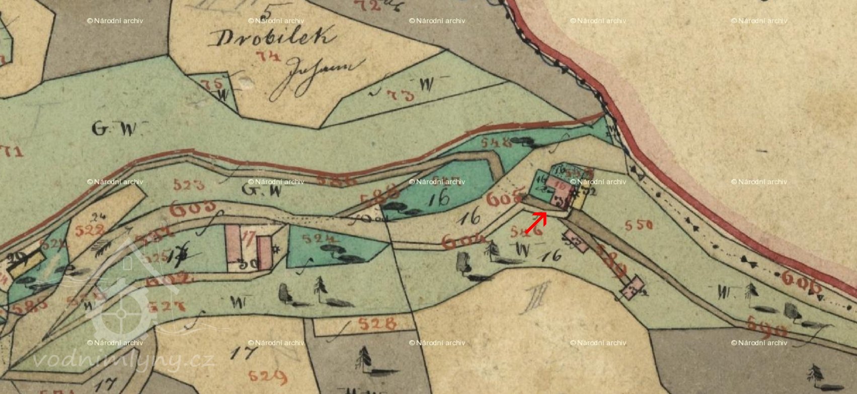 1654 Berní rula: mlynář Václav Moravec má mlýn o jednom kole, 5 strychů polí, osívá po jednom strychu na zimu a na jaro, má 1 krávu, 1 jalovici a 2 svině.