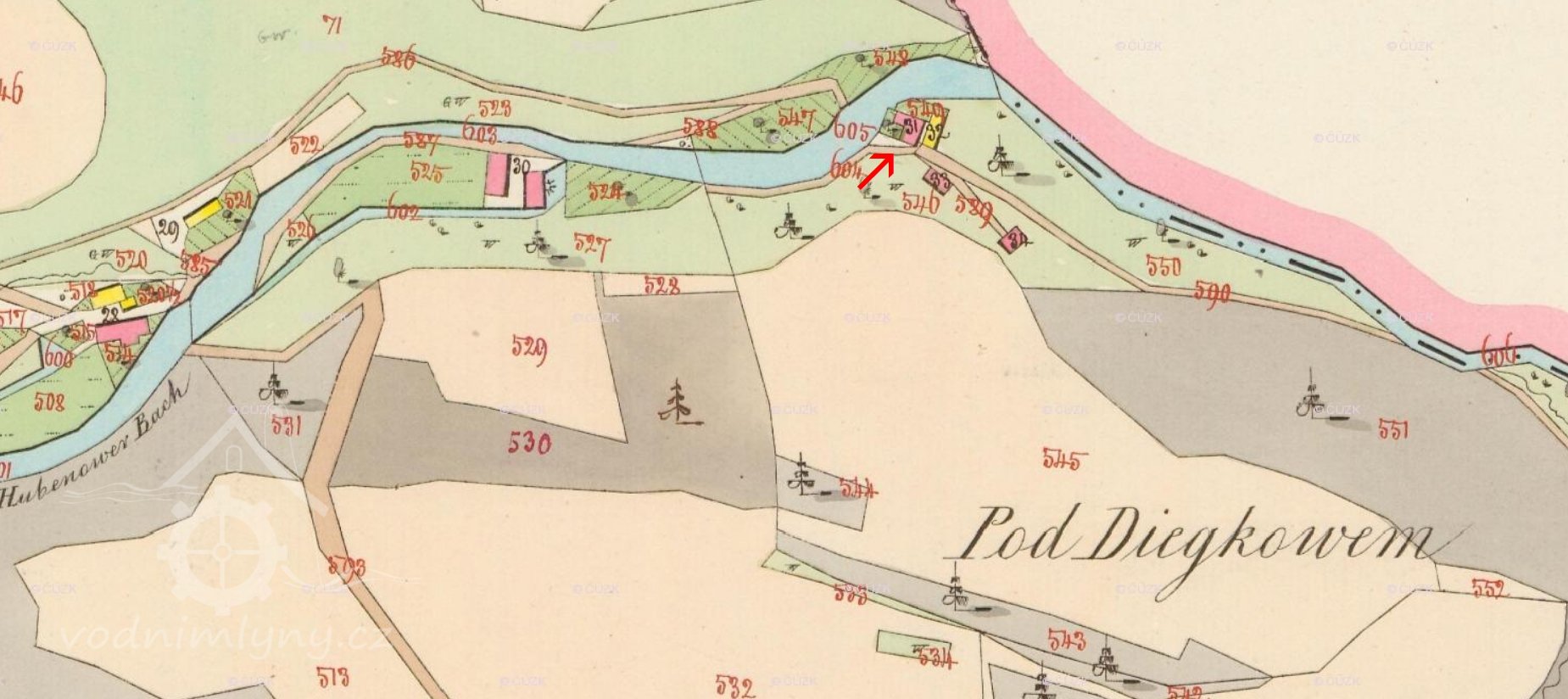 1566 Registra křížovnická: Duchek ze Županovic koupil mlýn prostřední pod Hubenovem od Štěpána mlynáře s nádobím a se železy, co k mlýnu náleží.